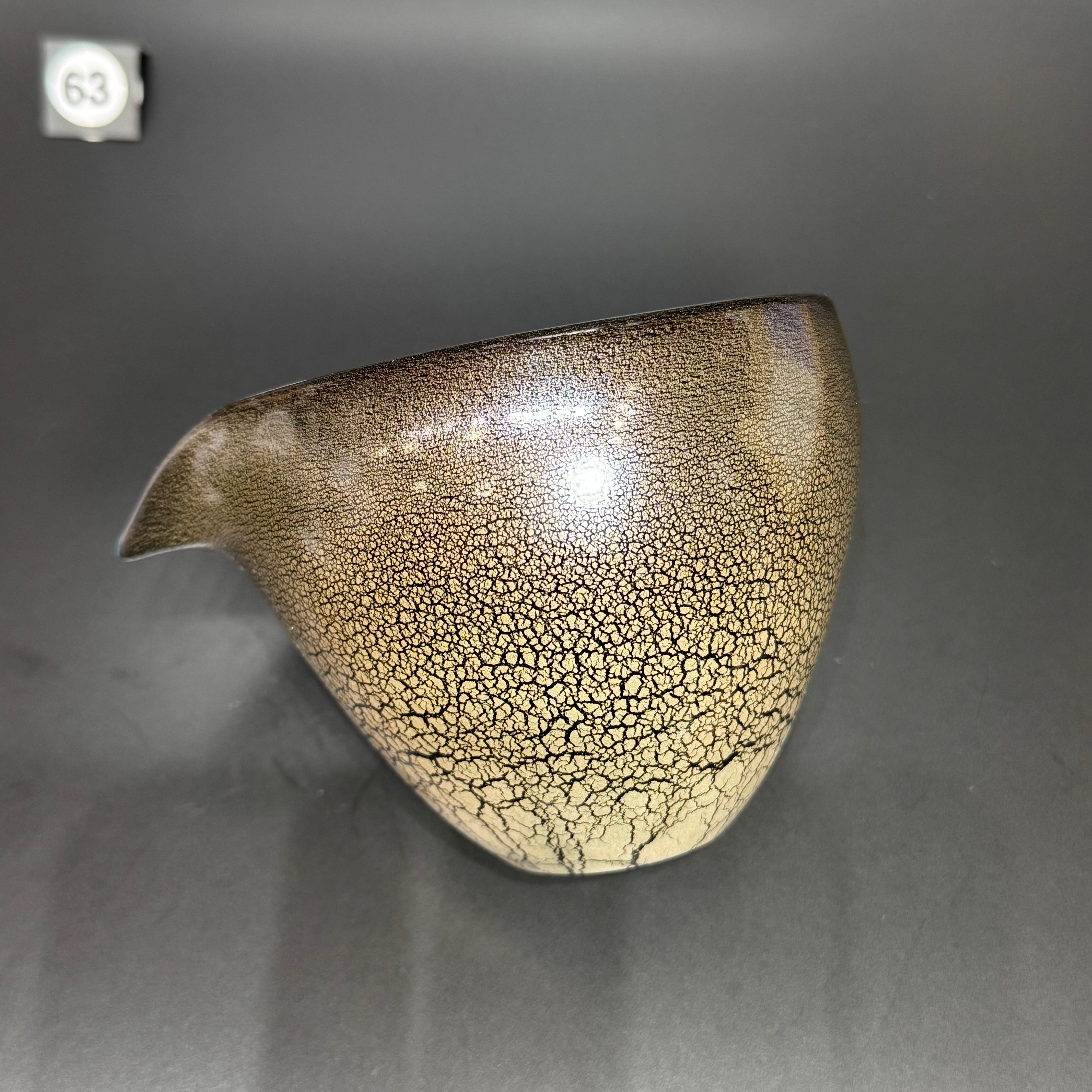 マットに仕上げた外側は、金色のひび割れたような模様になっており、ガラスとも陶器ともまた違った手触りがお楽しみいただけます。