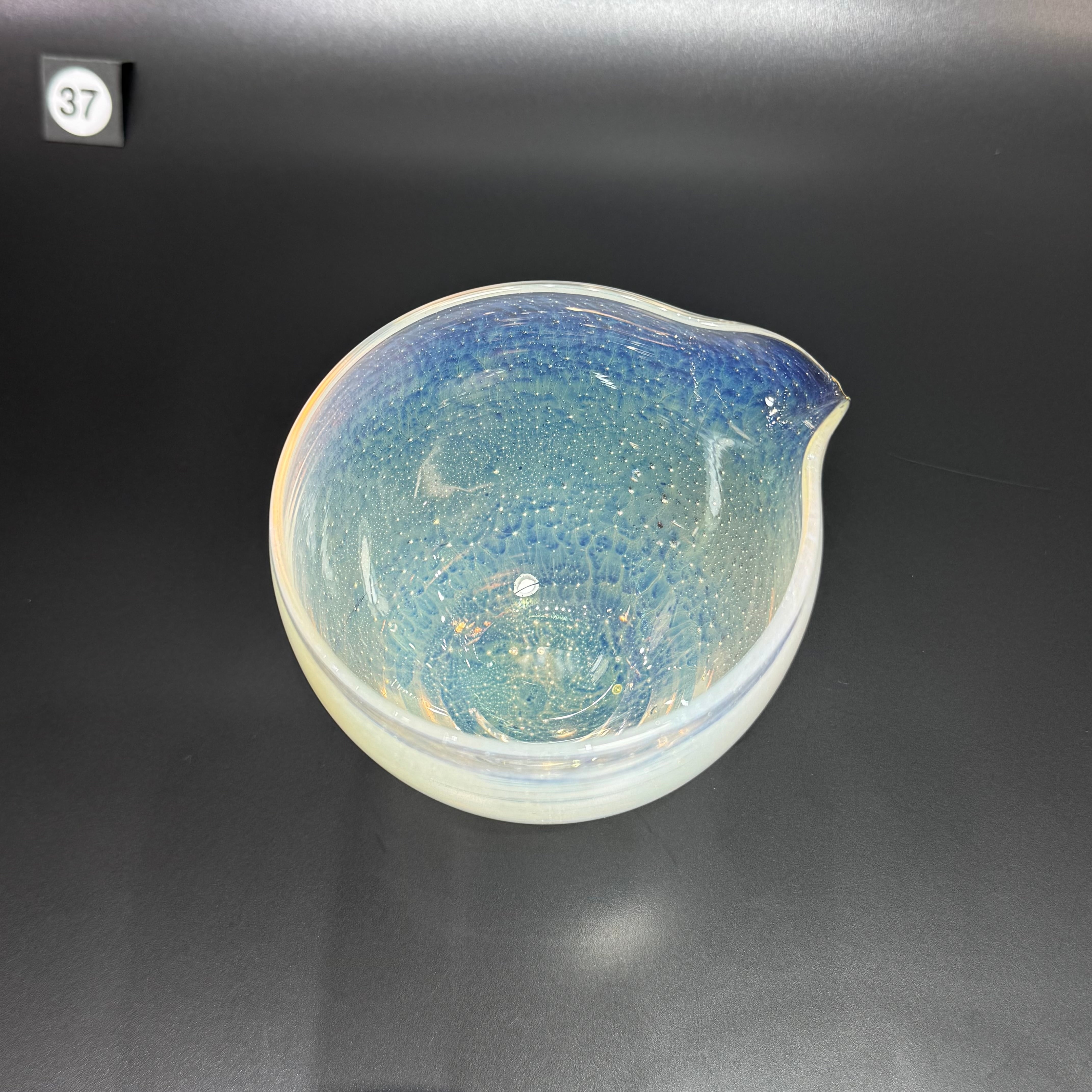 月をイメージして吹きガラスで制作しています。