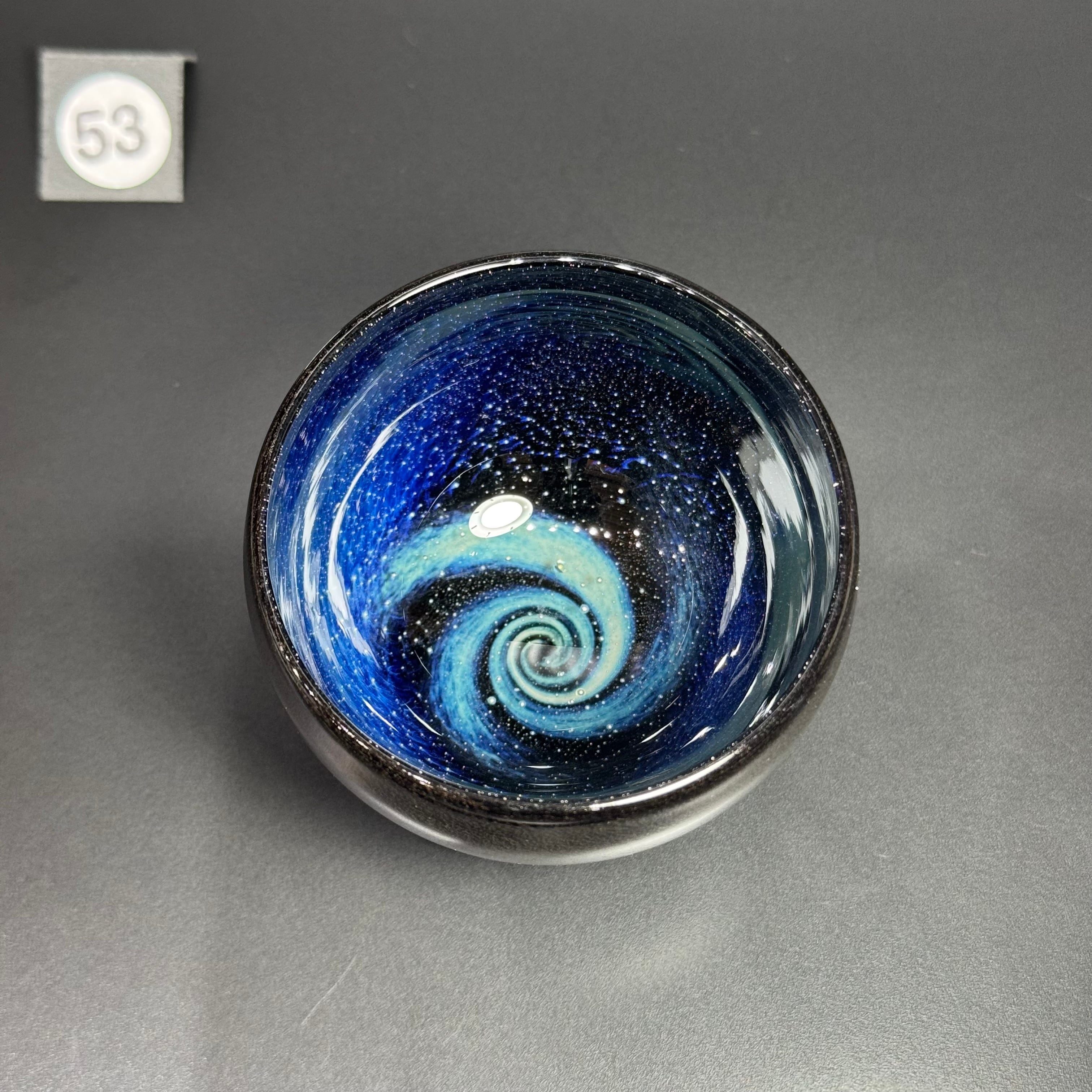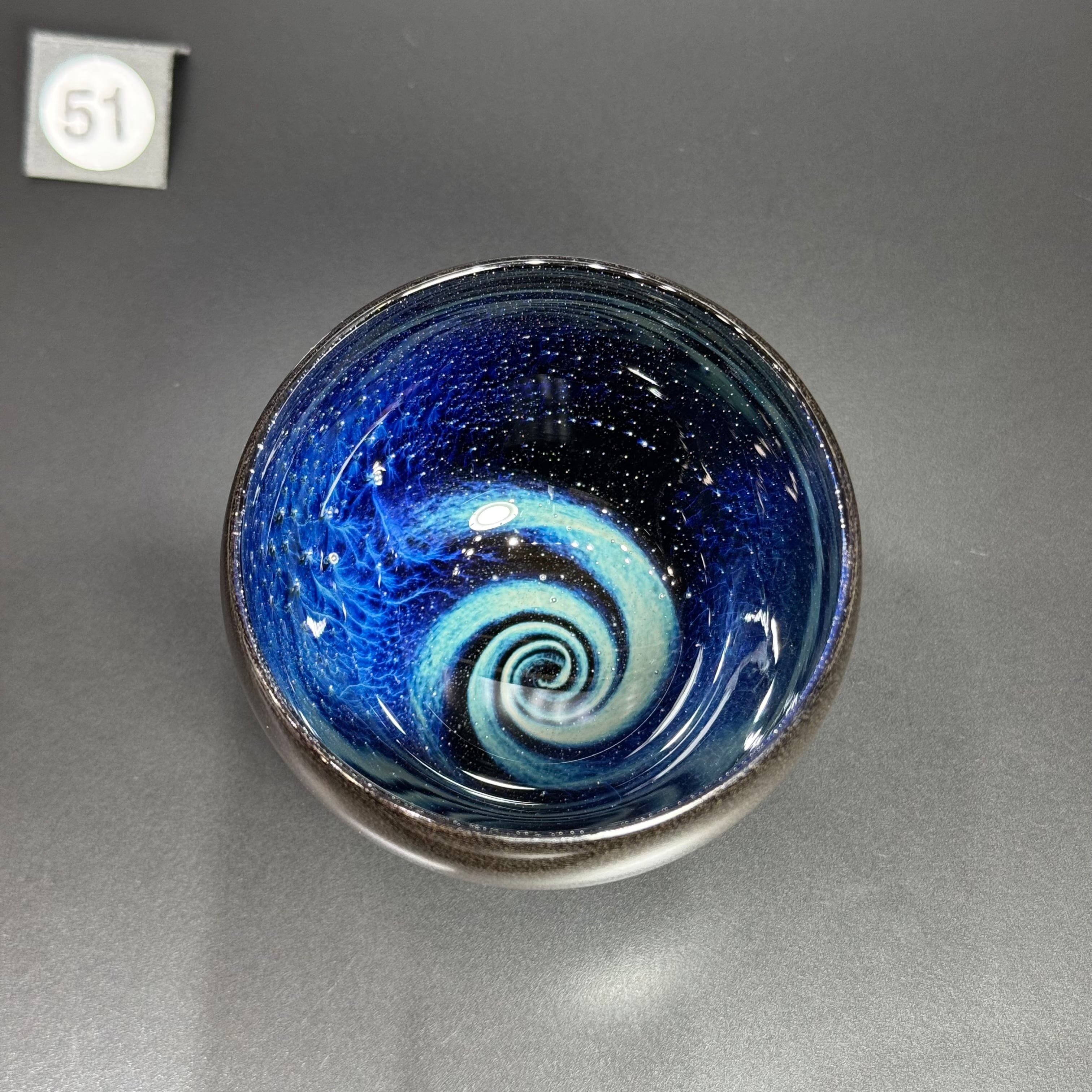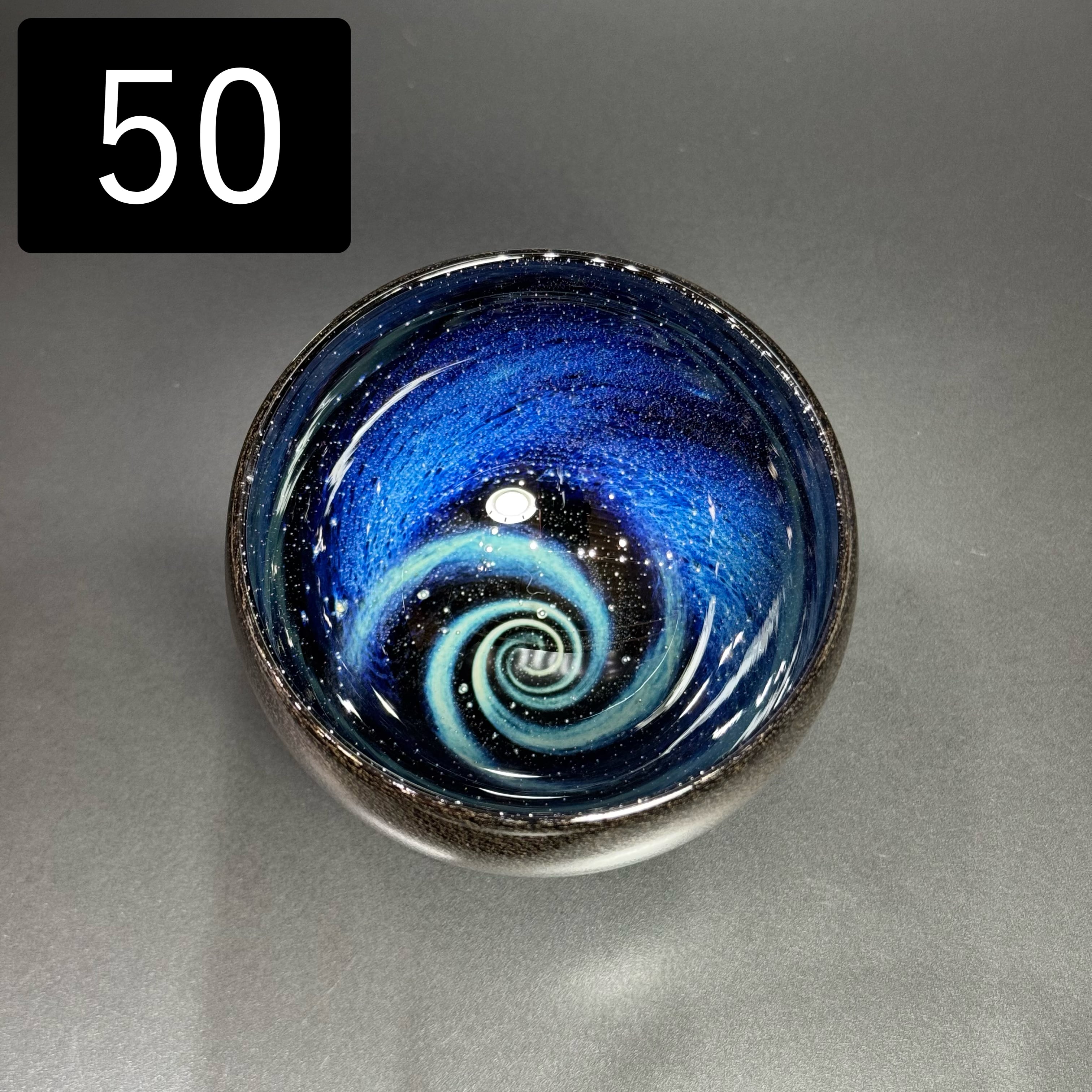 宇宙に渦巻く銀河をイメージして吹きガラスで制作しています。
