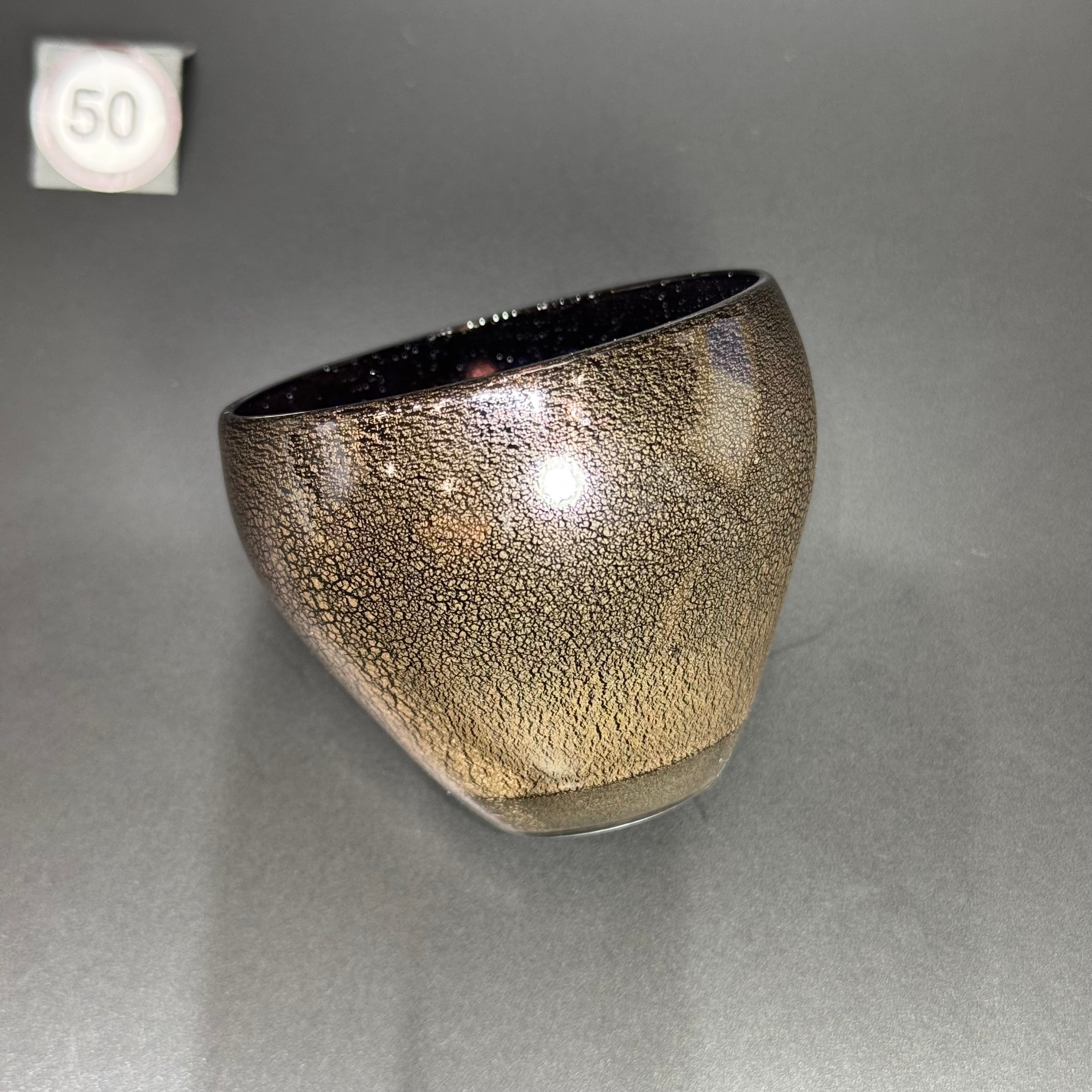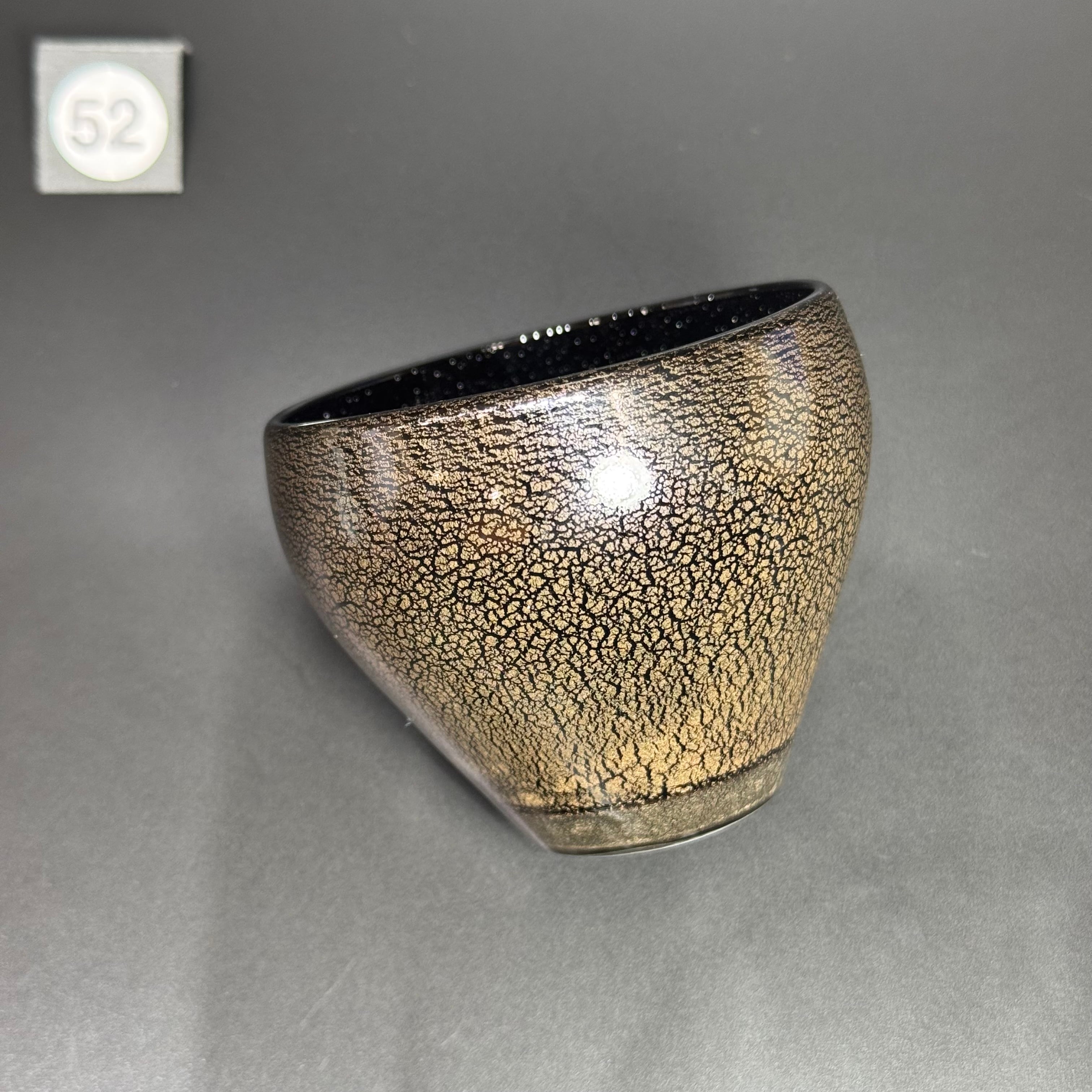 マットに仕上げた外側は、金色のひび割れたような模様になっており、ガラスとも陶器ともまた違った手触りがお楽しみいただけます。