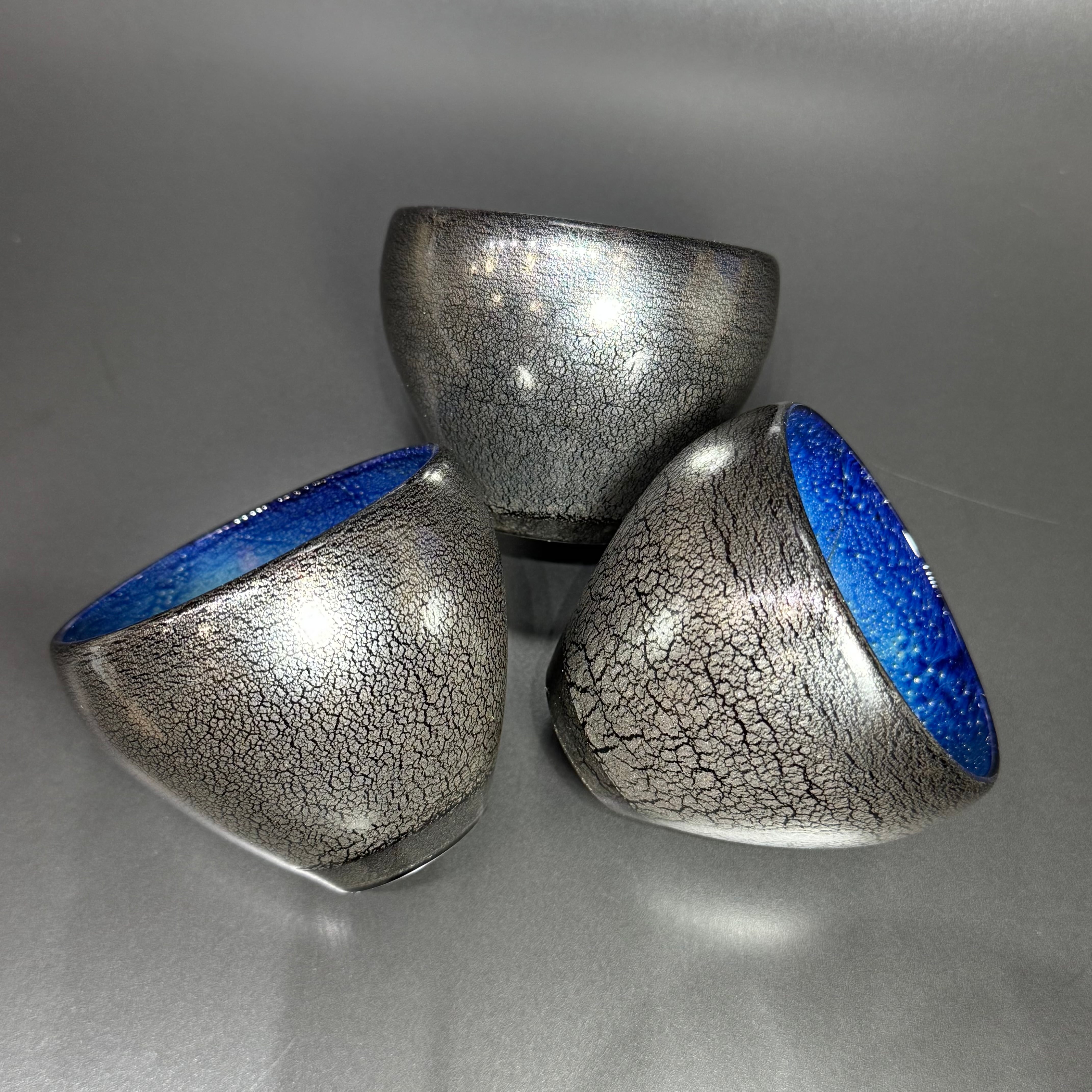 マットに仕上げた外側は、銀色のひび割れたような模様になっており、ガラスとも陶器ともまた違った手触りがお楽しみいただけます。
