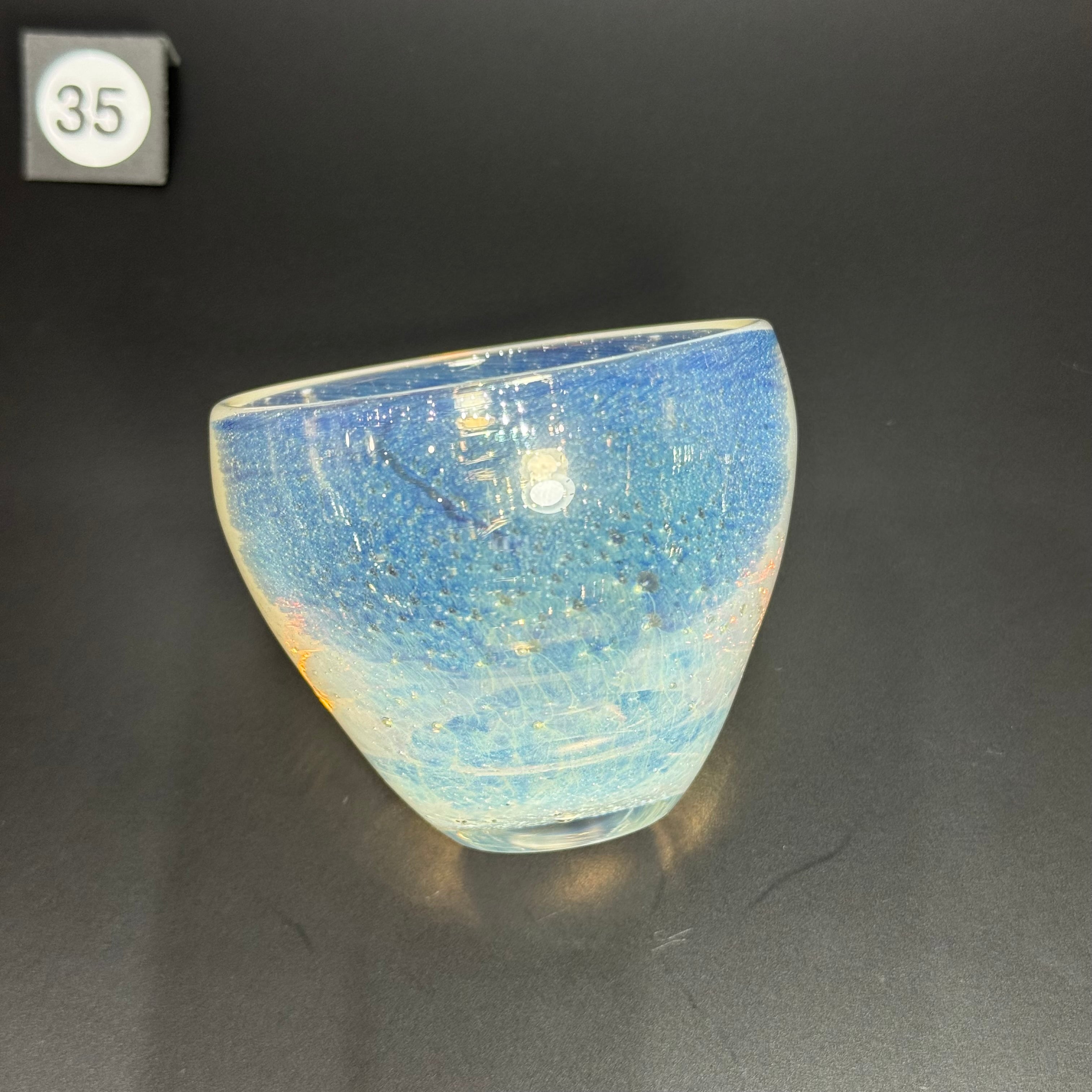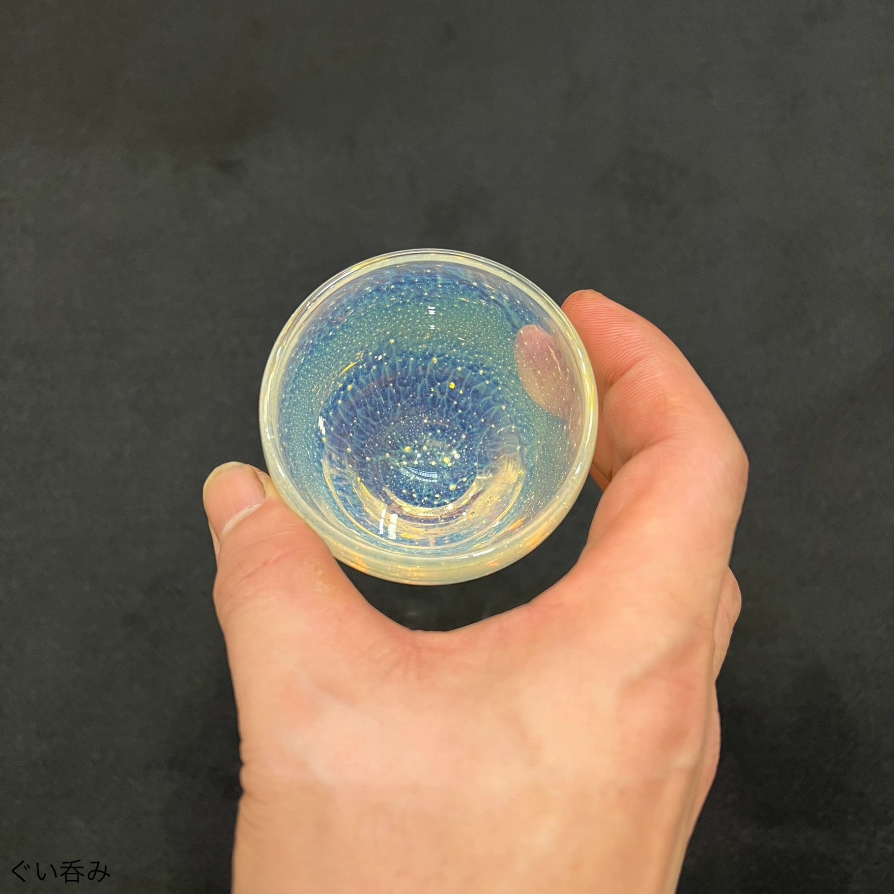 手の中に納まるサイズ感で、厚みのあるガラスが程よい重量感のぐい吞みです。