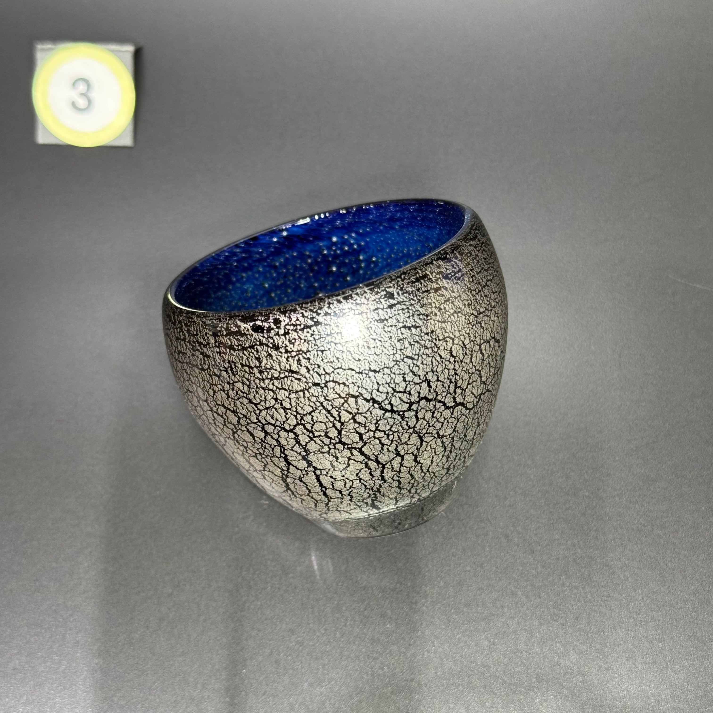 マットに仕上げた外側は、銀色のひび割れたような模様になっており、ガラスとも陶器ともまた違った手触りがお楽しみいただけます。