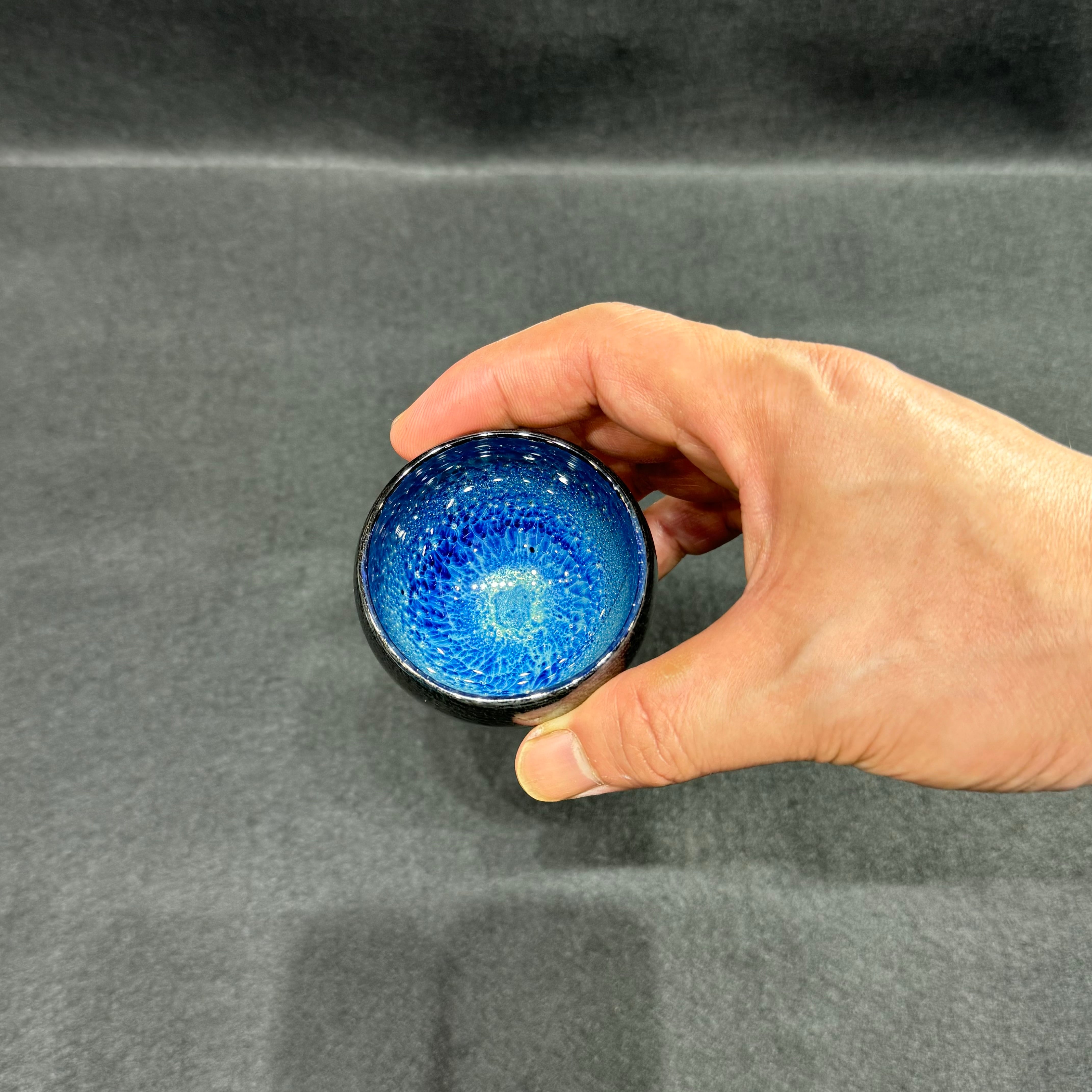 指で持てるほどのサイズ感ながら、厚みのあるガラスが程よい重量感のお猪口です。