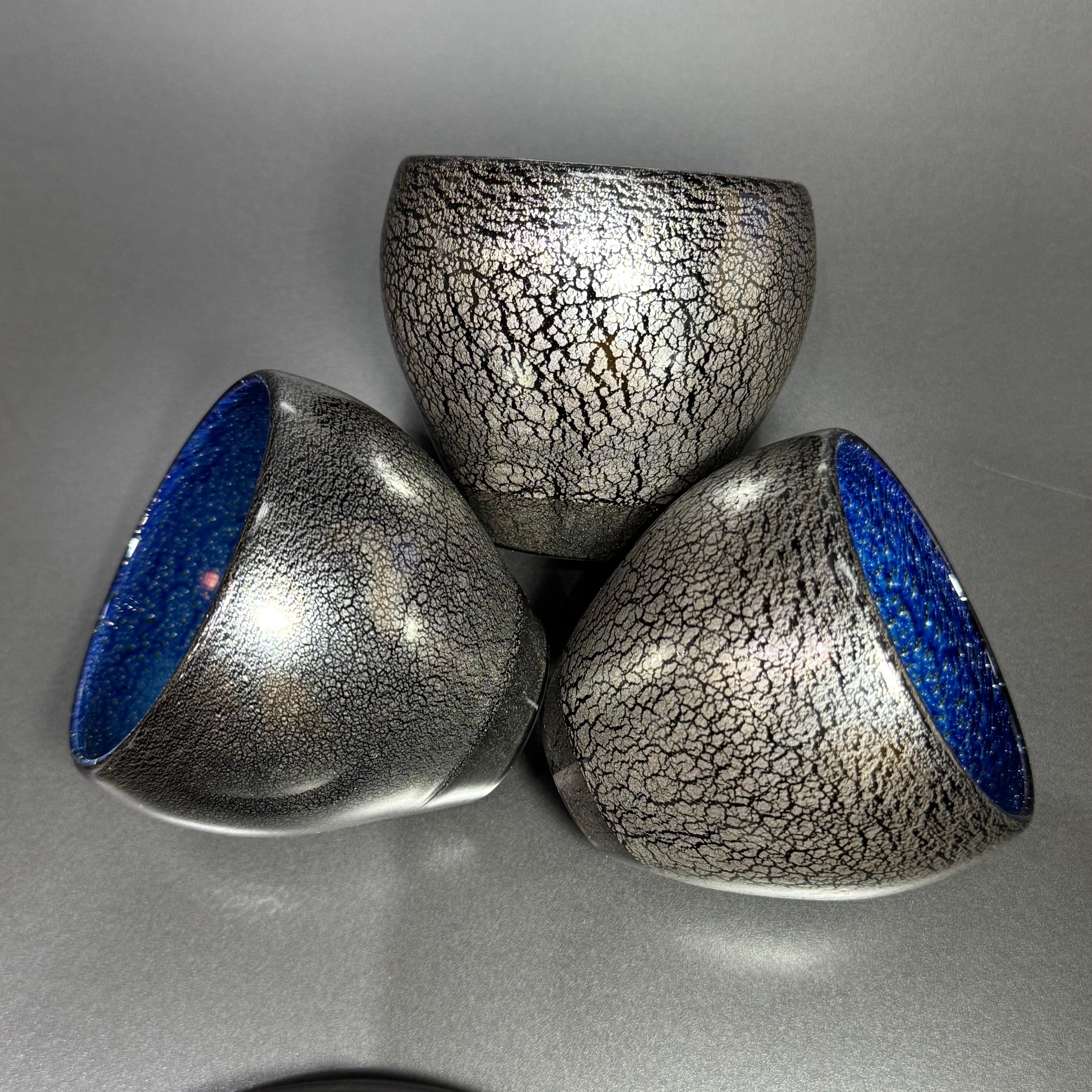 マットに仕上げた外側は、銀色のひび割れたような模様になっており、ガラスとも陶器ともまた違った手触りがお楽しみいただけます。