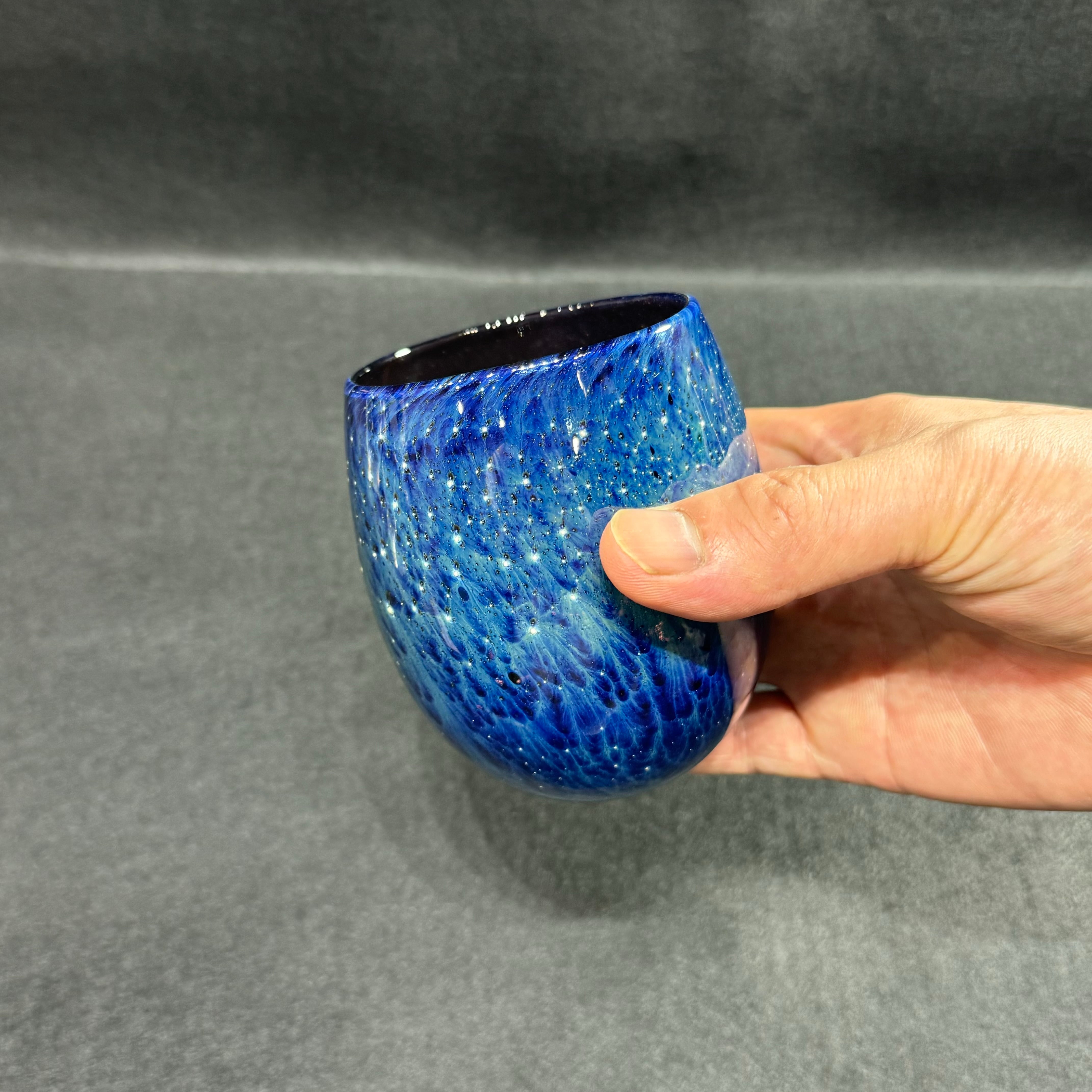 ずっしりとした厚みと重量感のあり、360度青く輝く宇宙で包み込んだような、どの角度でもお楽しみいただけるタンブラーです。
