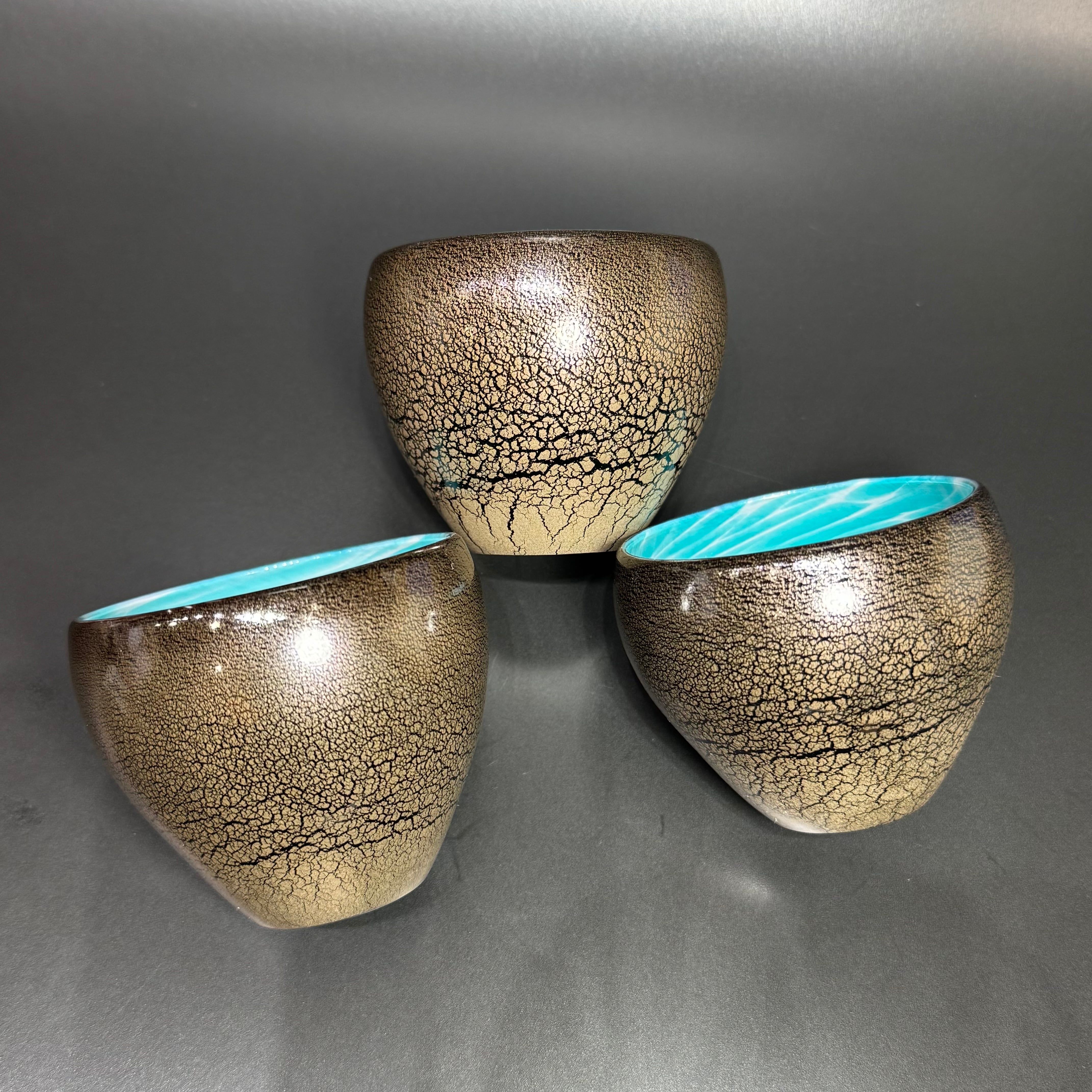 マットに仕上げた外側は、金色のひび割れたような模様になっており、ガラスとも陶器ともまた違った手触りが特徴です。