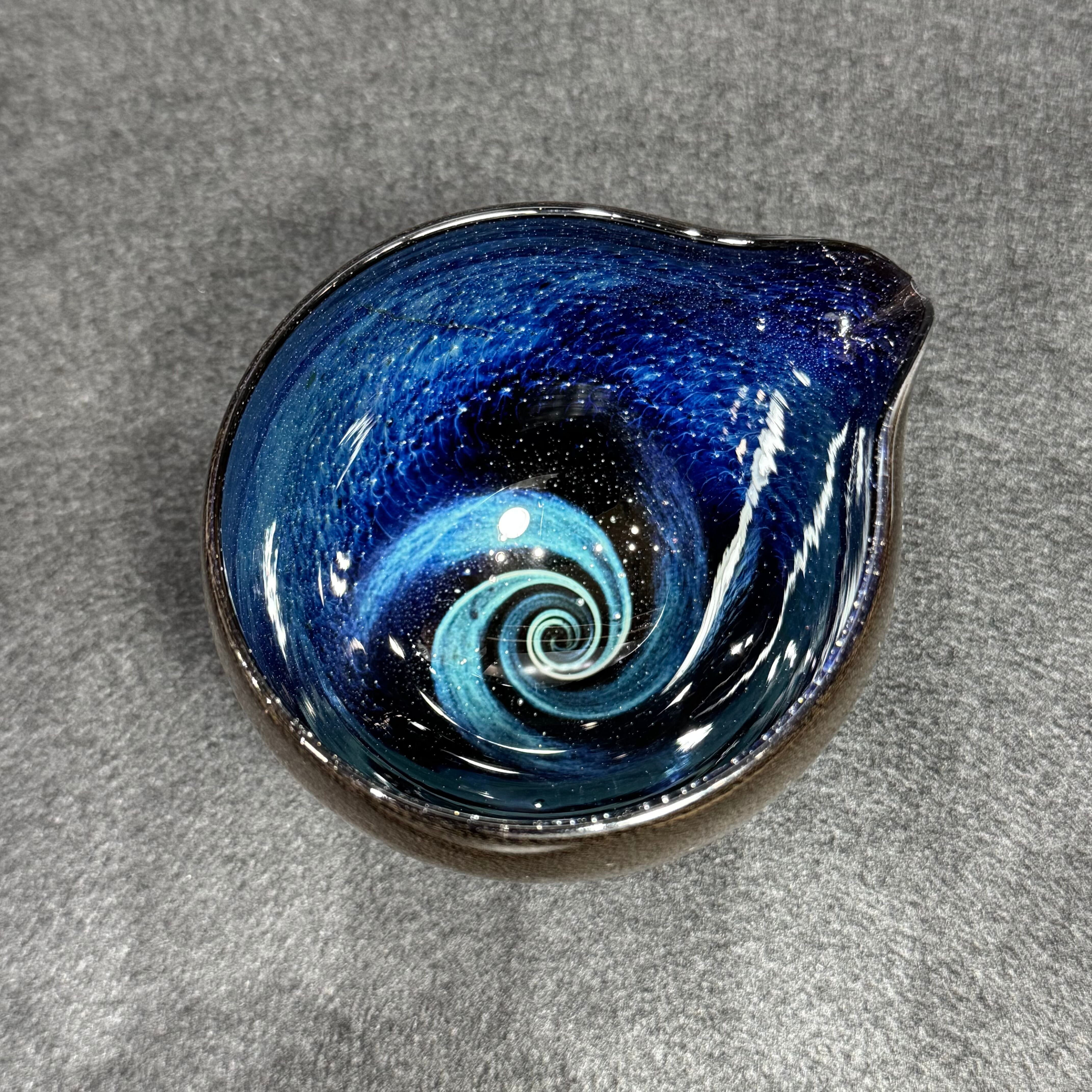 宇宙に渦巻く銀河をイメージして吹きガラスで制作しています。
