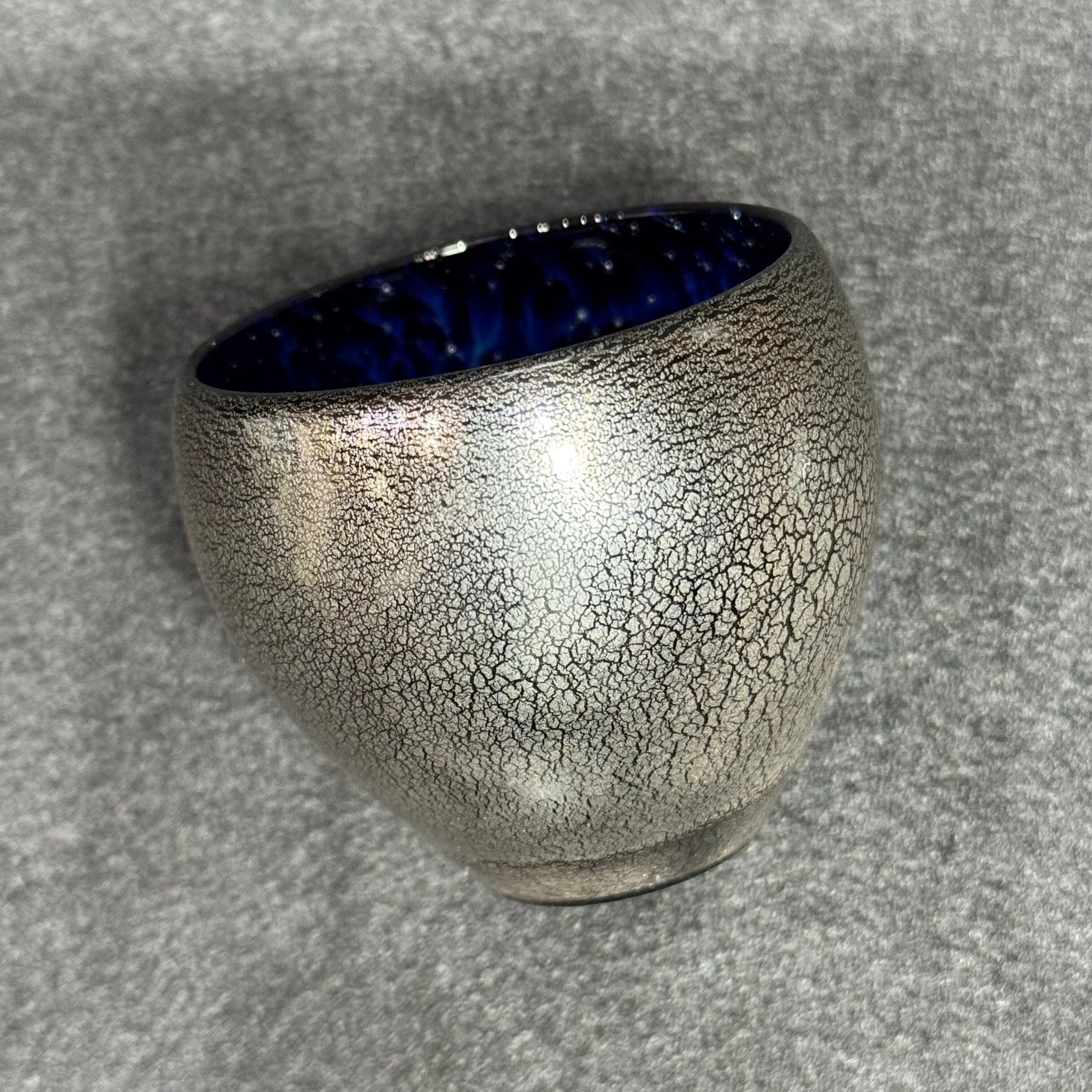 マットに仕上げた外側は、銀色のひび割れたような模様になっており、ガラスとも陶器ともまた違った手触りがお楽しみいただけます。