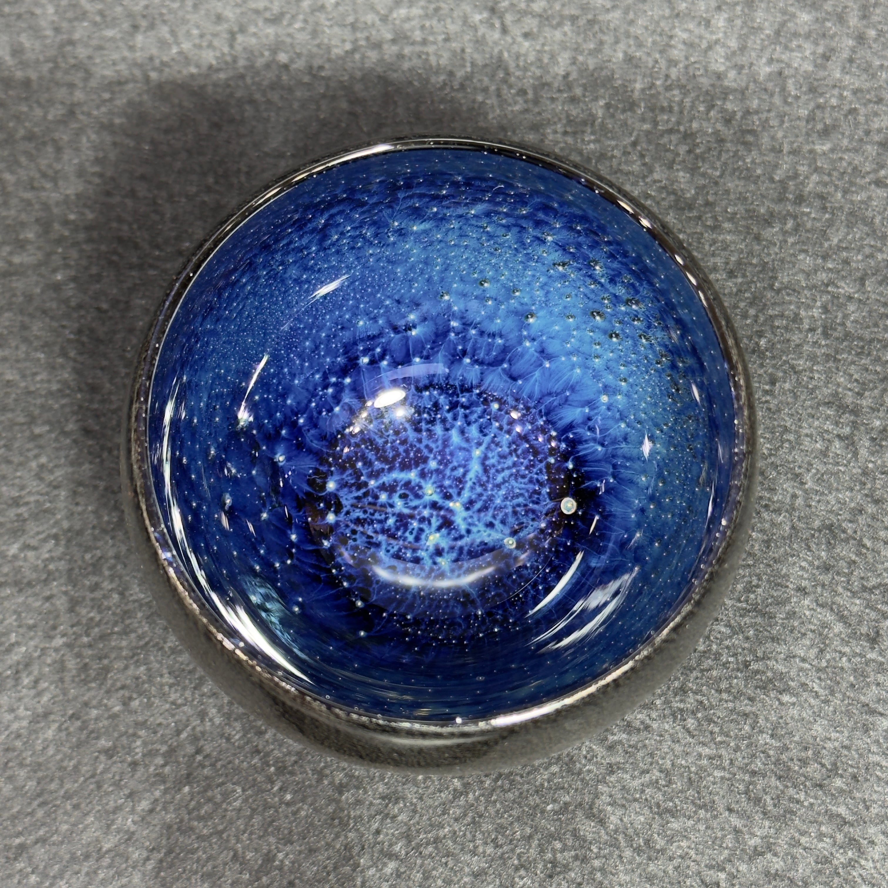 マットに仕上げた外側は、銀色のひび割れたような模様になっており、ガラスとも陶器ともまた違った手触りがお楽しみいただけます。