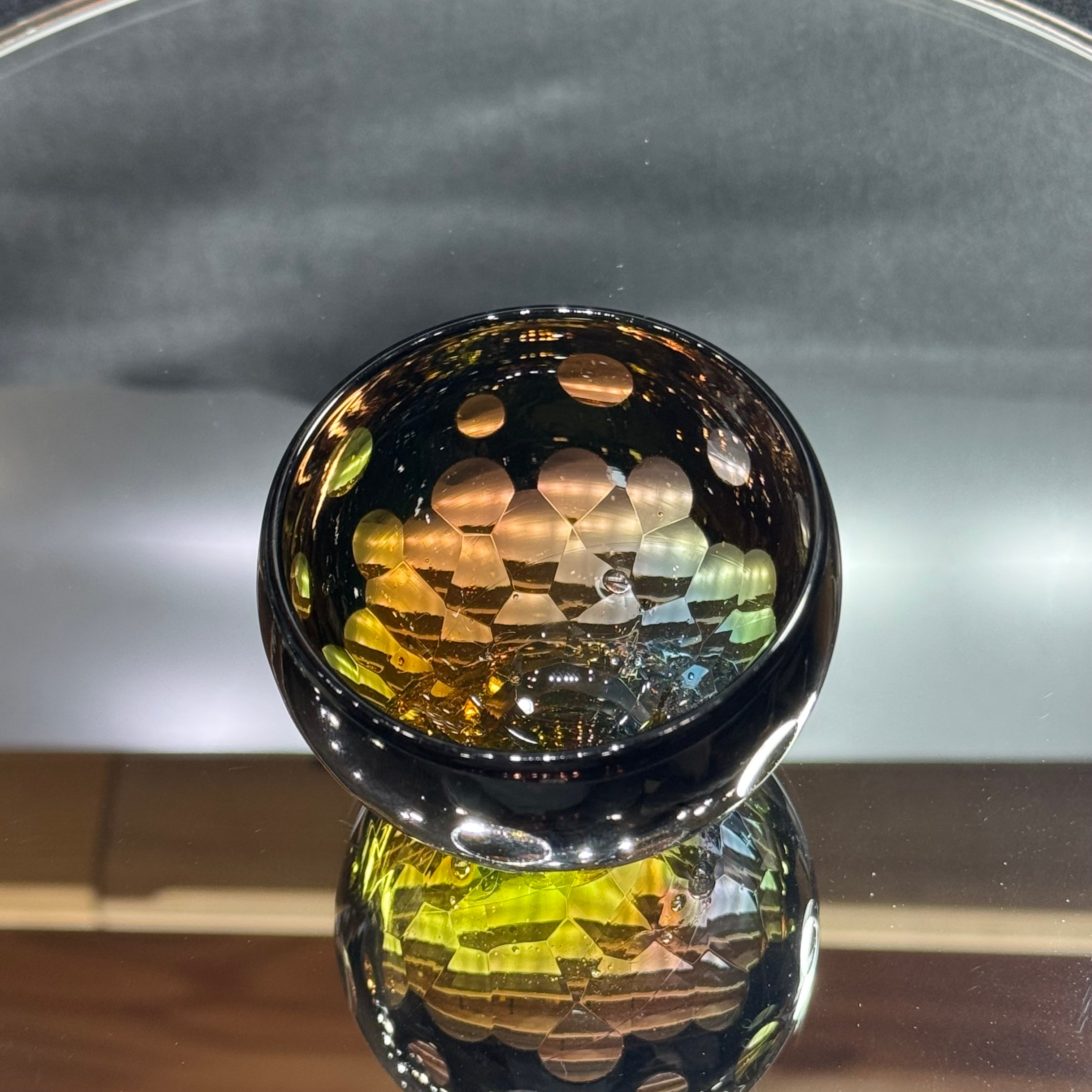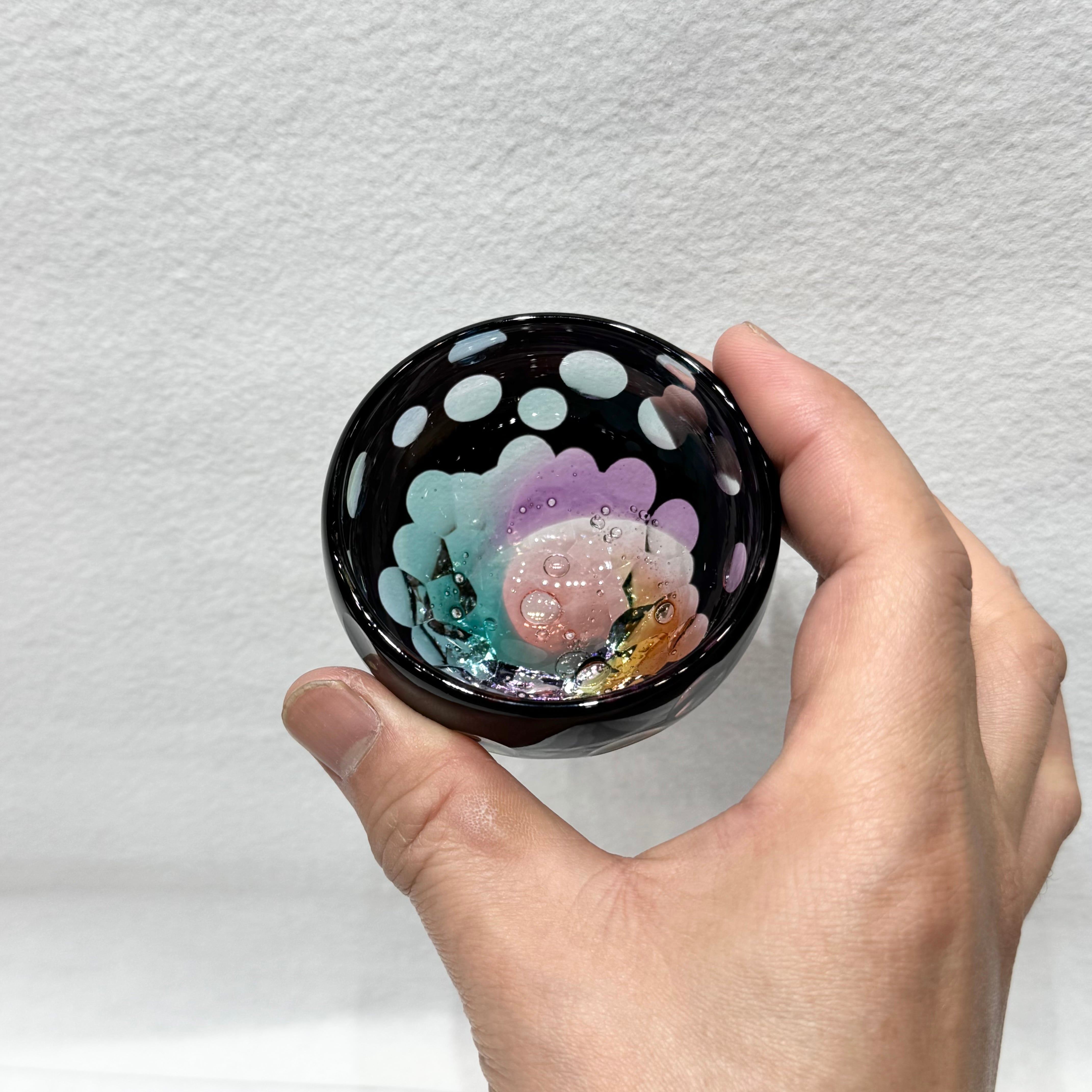 様々な色ガラスと黒いガラスのコントラストが特徴の器です。