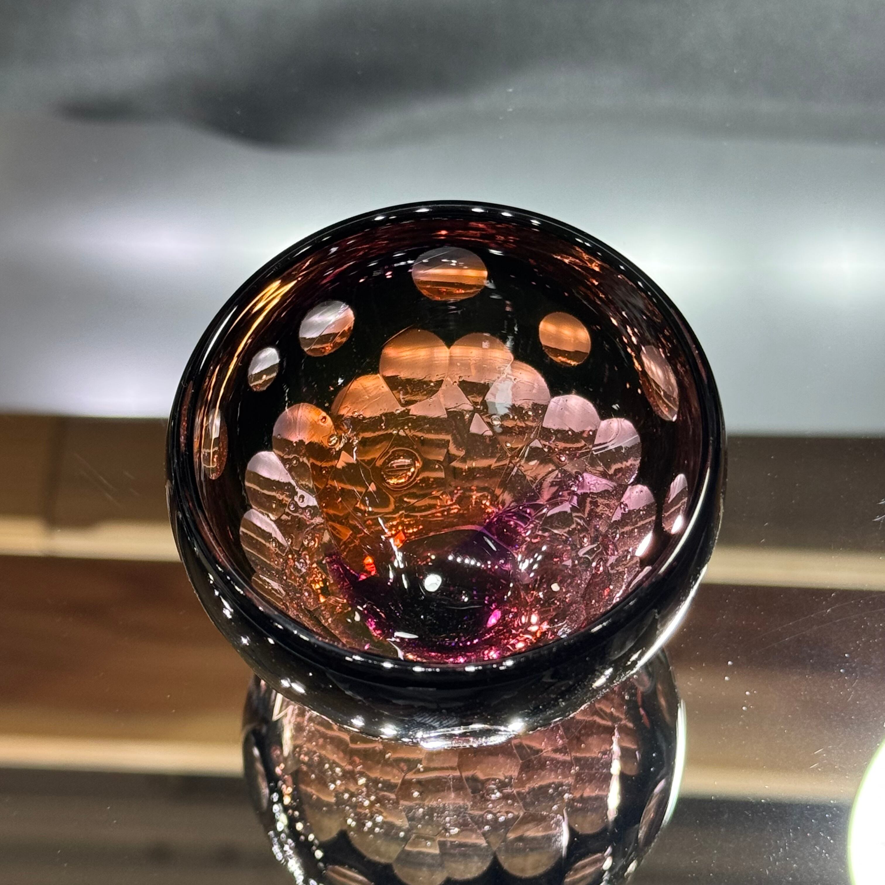 手の中に納まるサイズ感で、厚みのあるガラスが程よい重量感のぐい吞みです。