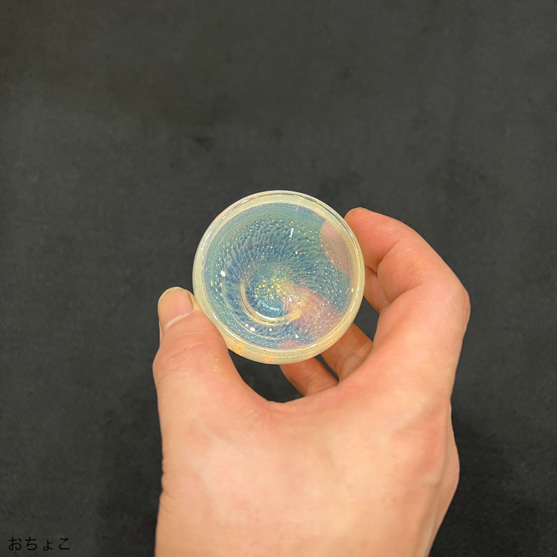 お猪口は指で持てるほどのサイズ感ながら、厚みのあるガラスが程よい重量感のお猪口です。