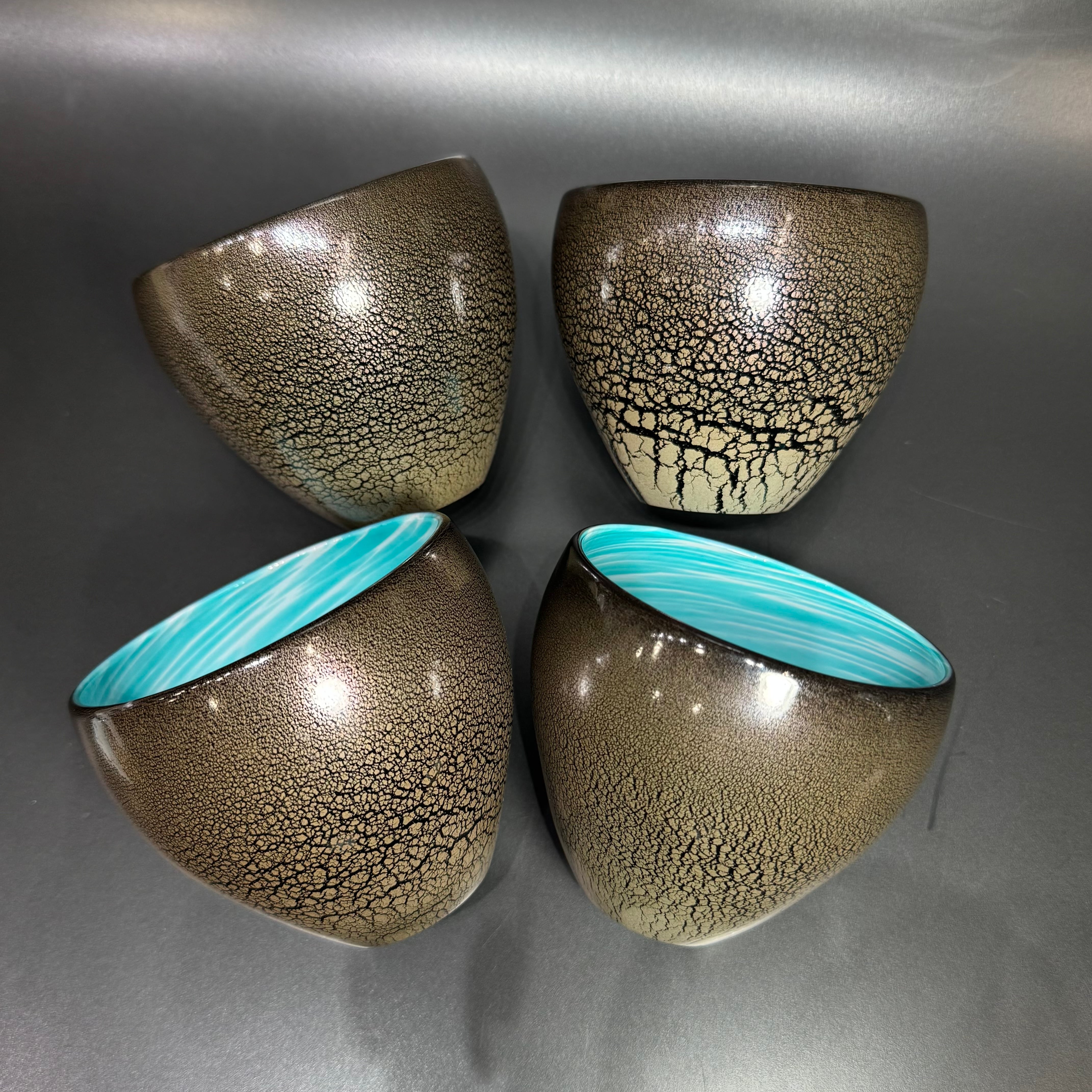 マットに仕上げた外側は、金色のひび割れたような模様になっており、ガラスとも陶器ともまた違った手触りがお楽しみいただけます。
