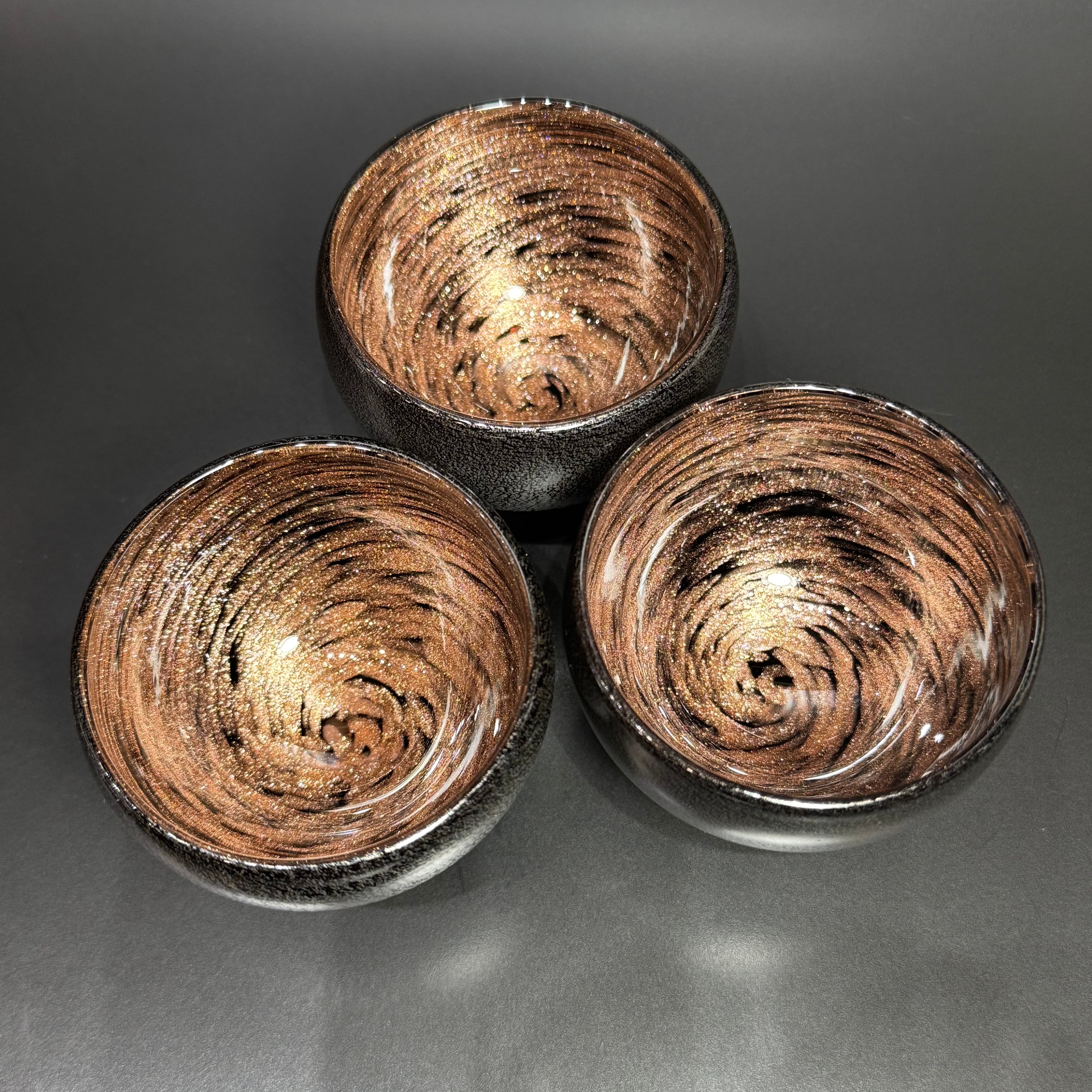 マットに仕上げた外側は、銀色のひび割れたような模様になっており、ガラスとも陶器ともまた違った手触りがお楽しみいただけます。