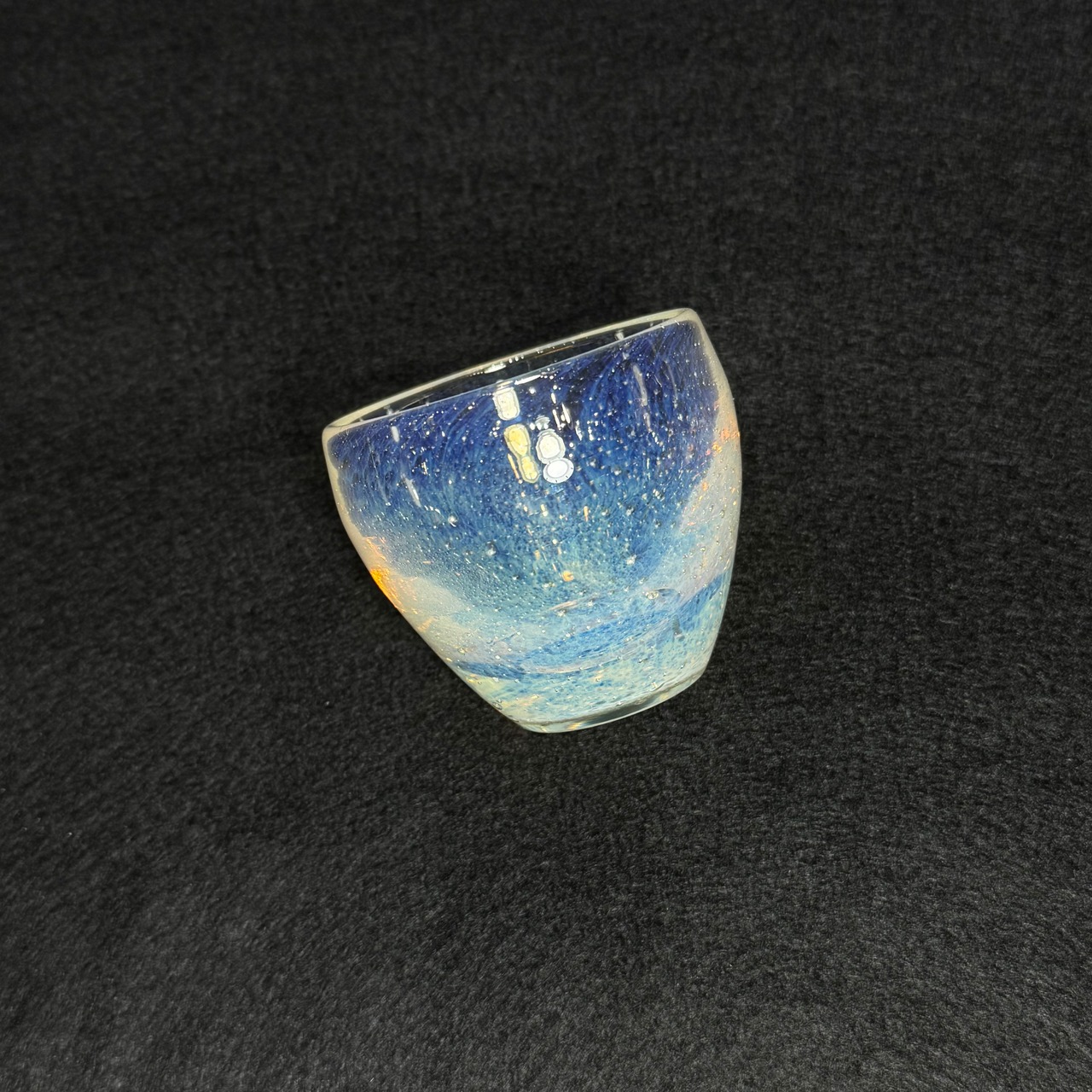 指で持てるほどのサイズ感ながら、厚みのあるガラスが程よい重量感のお猪口です。