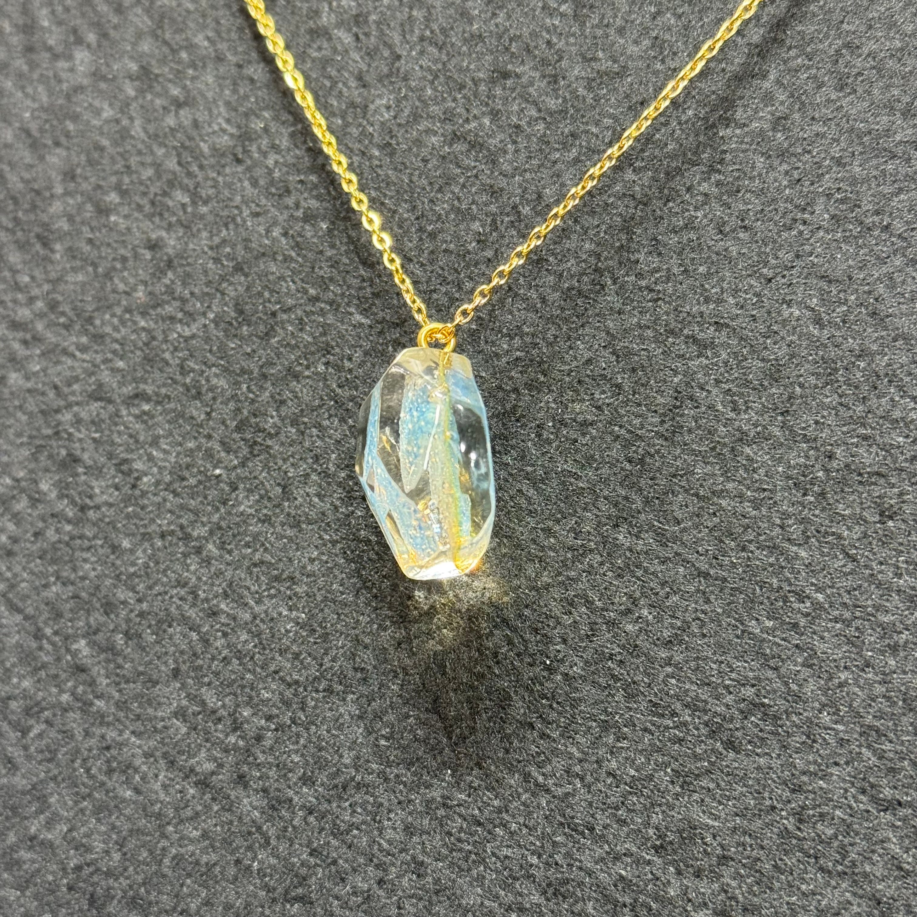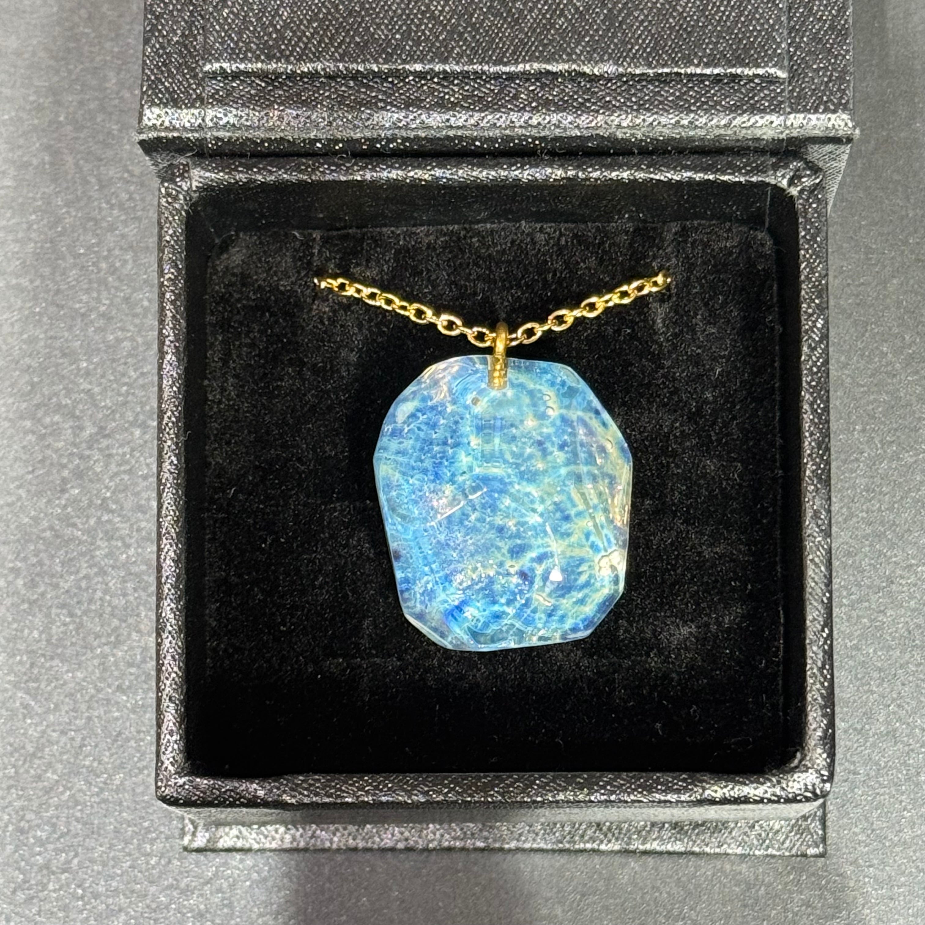 いびつな形なのでいろんな角度から光を反射し、ガラスならではの透明感と模様によってキラキラします。