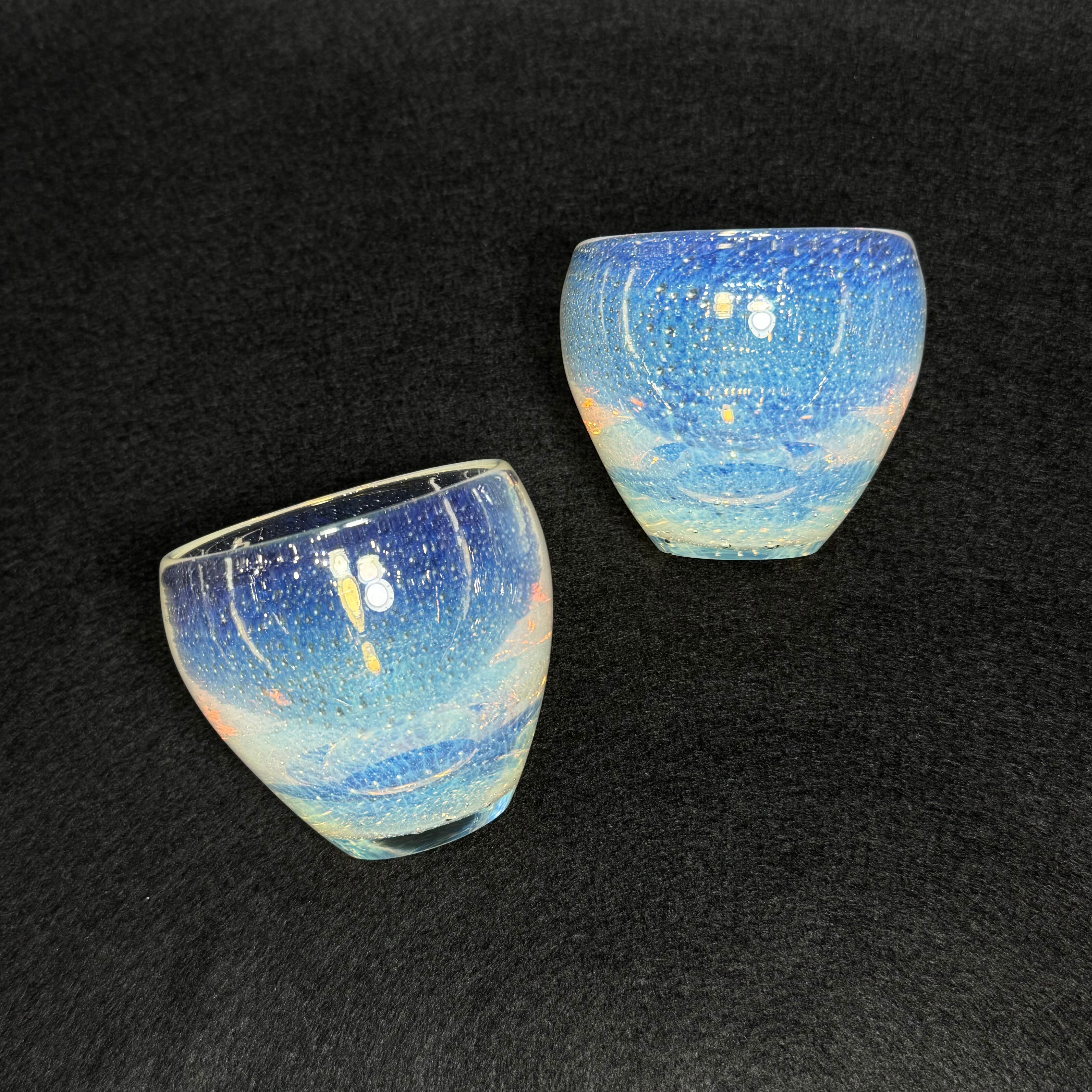お使いいただくシーン、背景の色、光の加減、注ぐお飲み物によって、青く見えたり、キラキラして見えたりと、様々な雰囲気の変化をお楽しみいただけます。