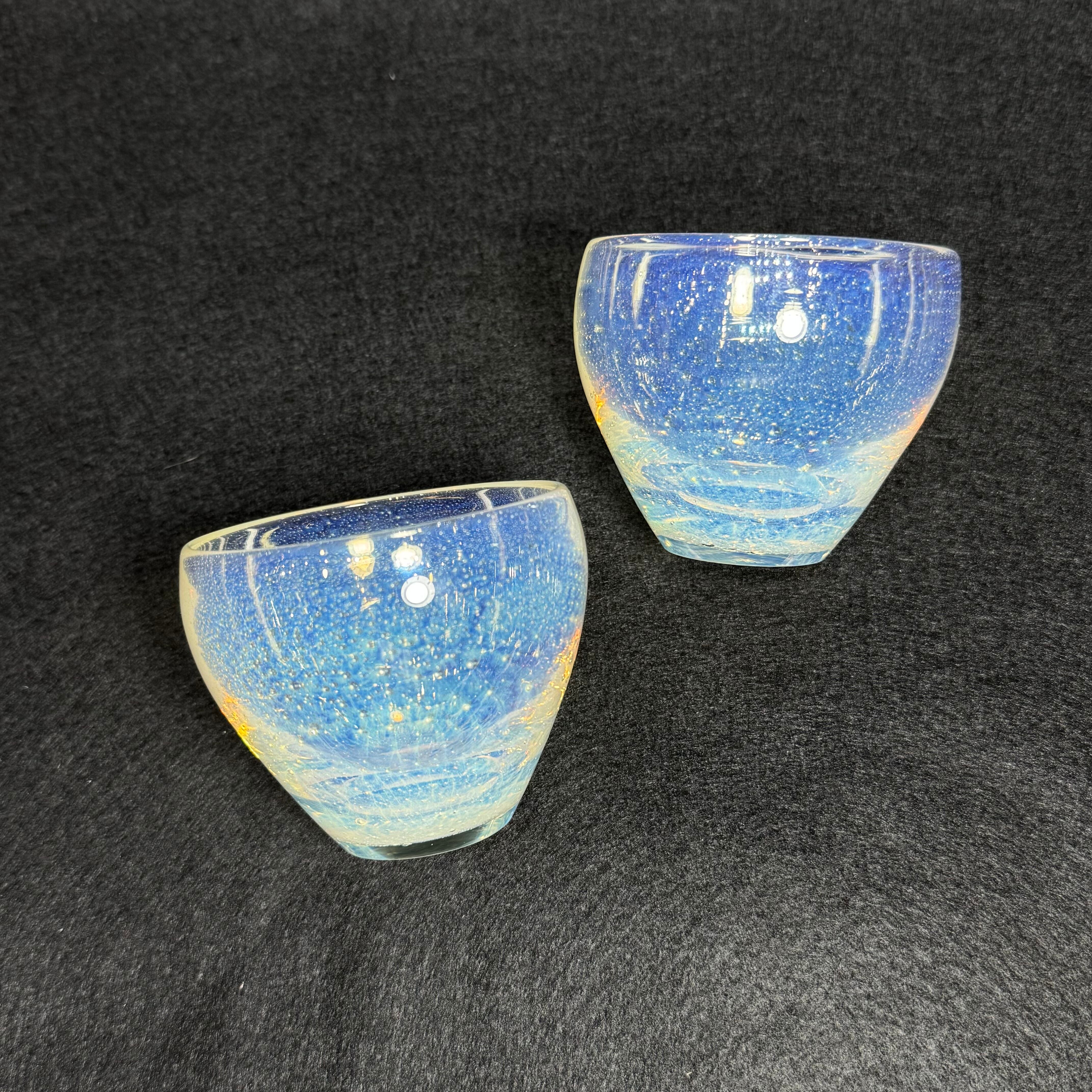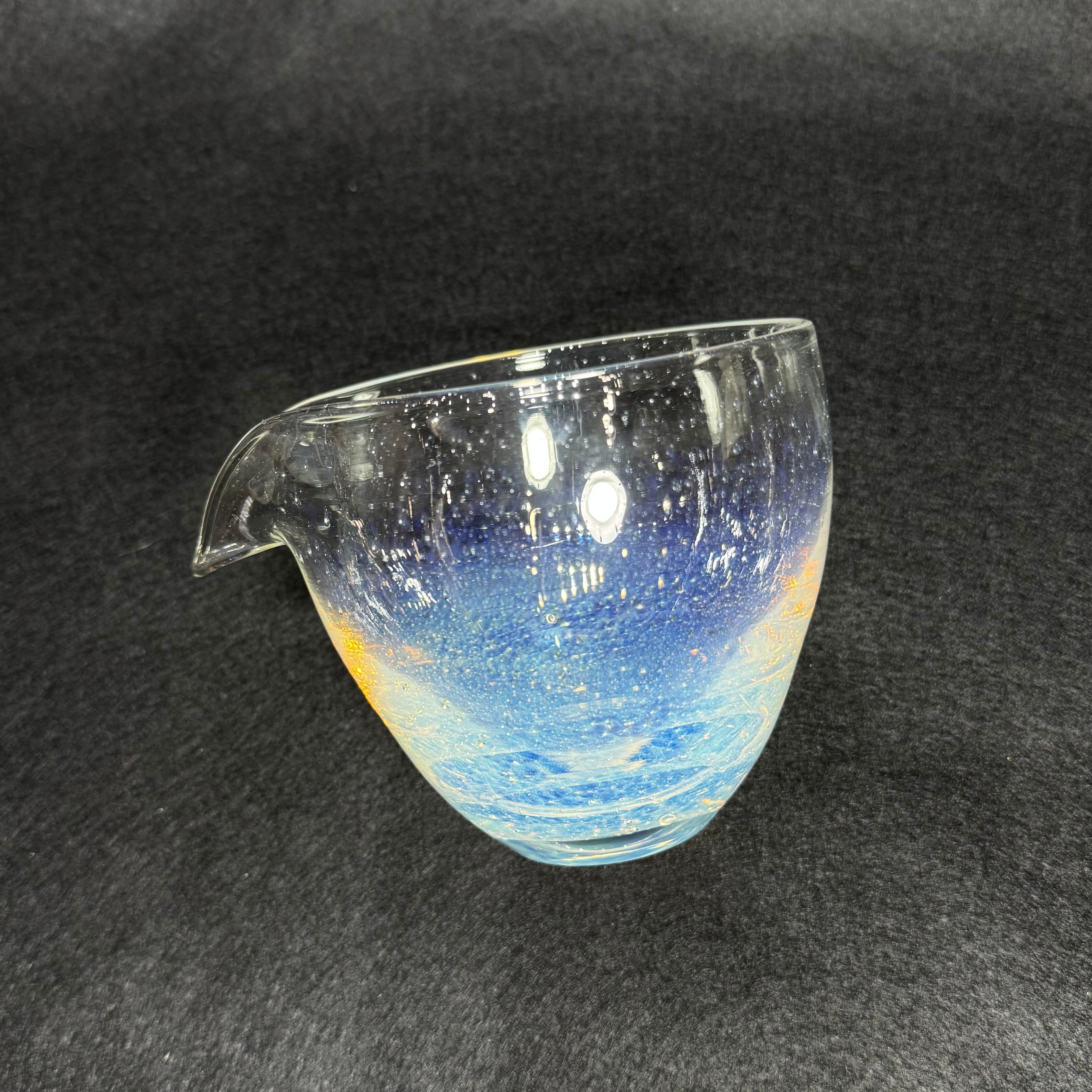 ぐい吞みは手の中に納まるサイズ感で、厚みのあるガラスが程よい重量感のぐい吞みです。