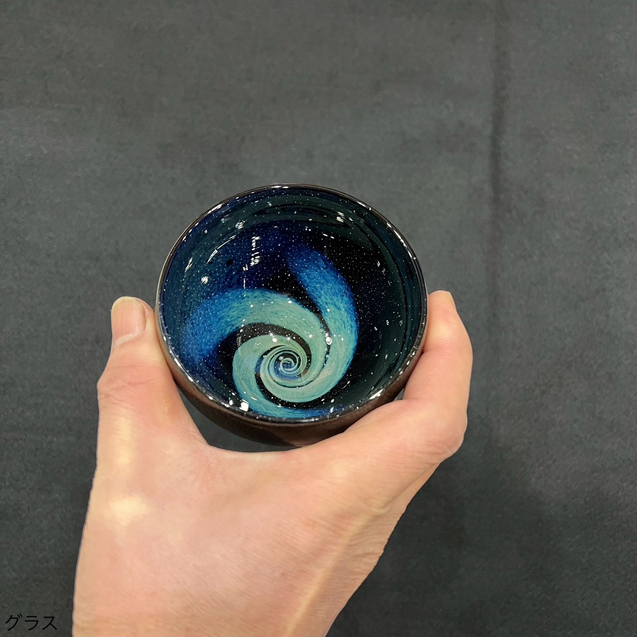 宇宙に渦巻く銀河をイメージして吹きガラスで制作しています。