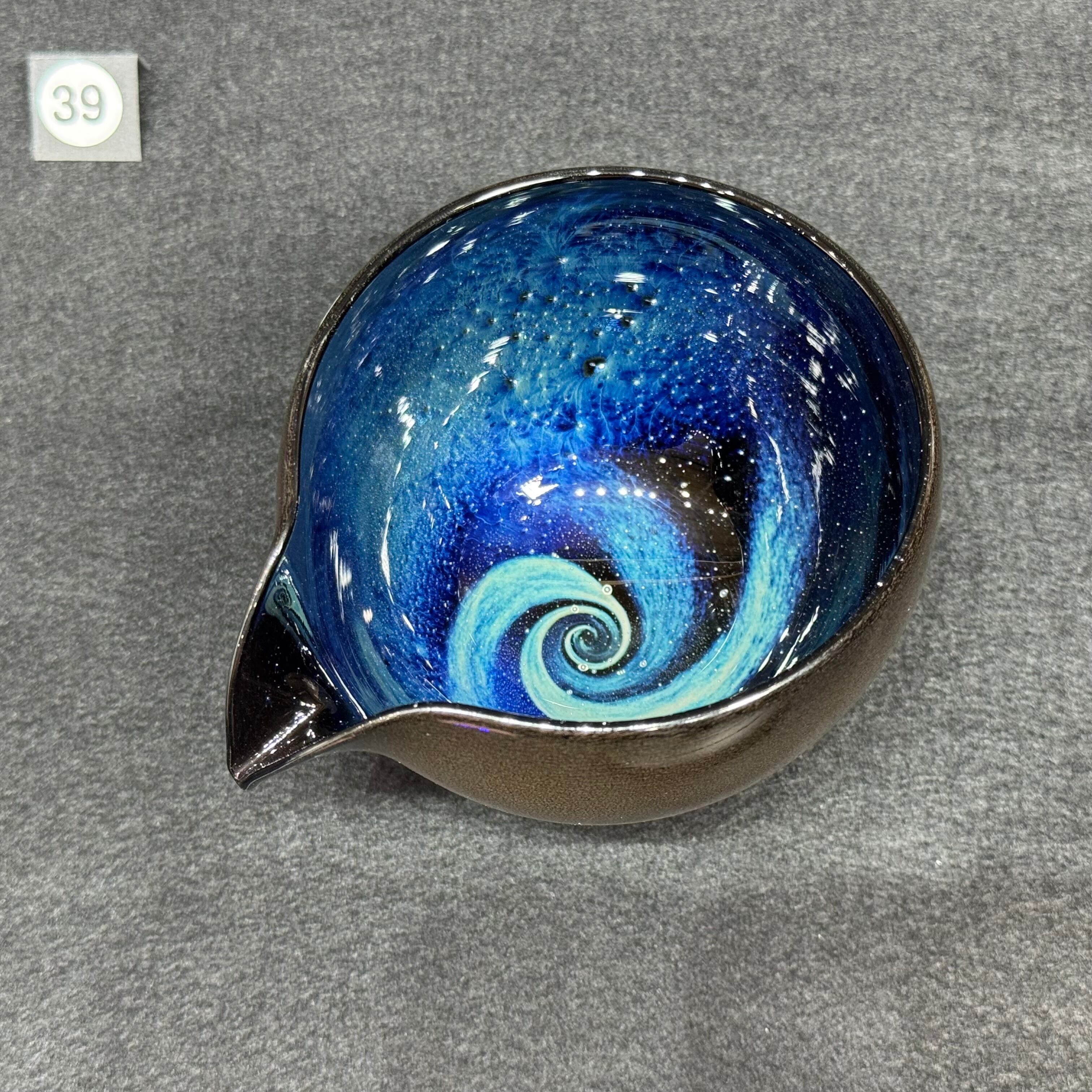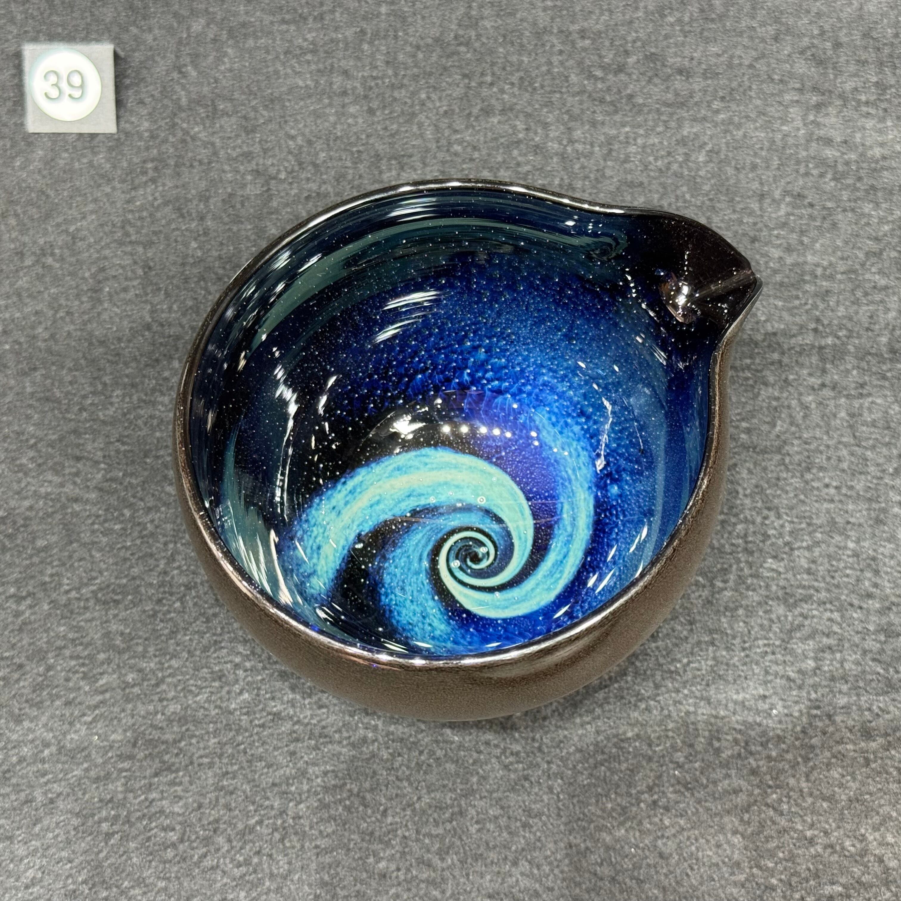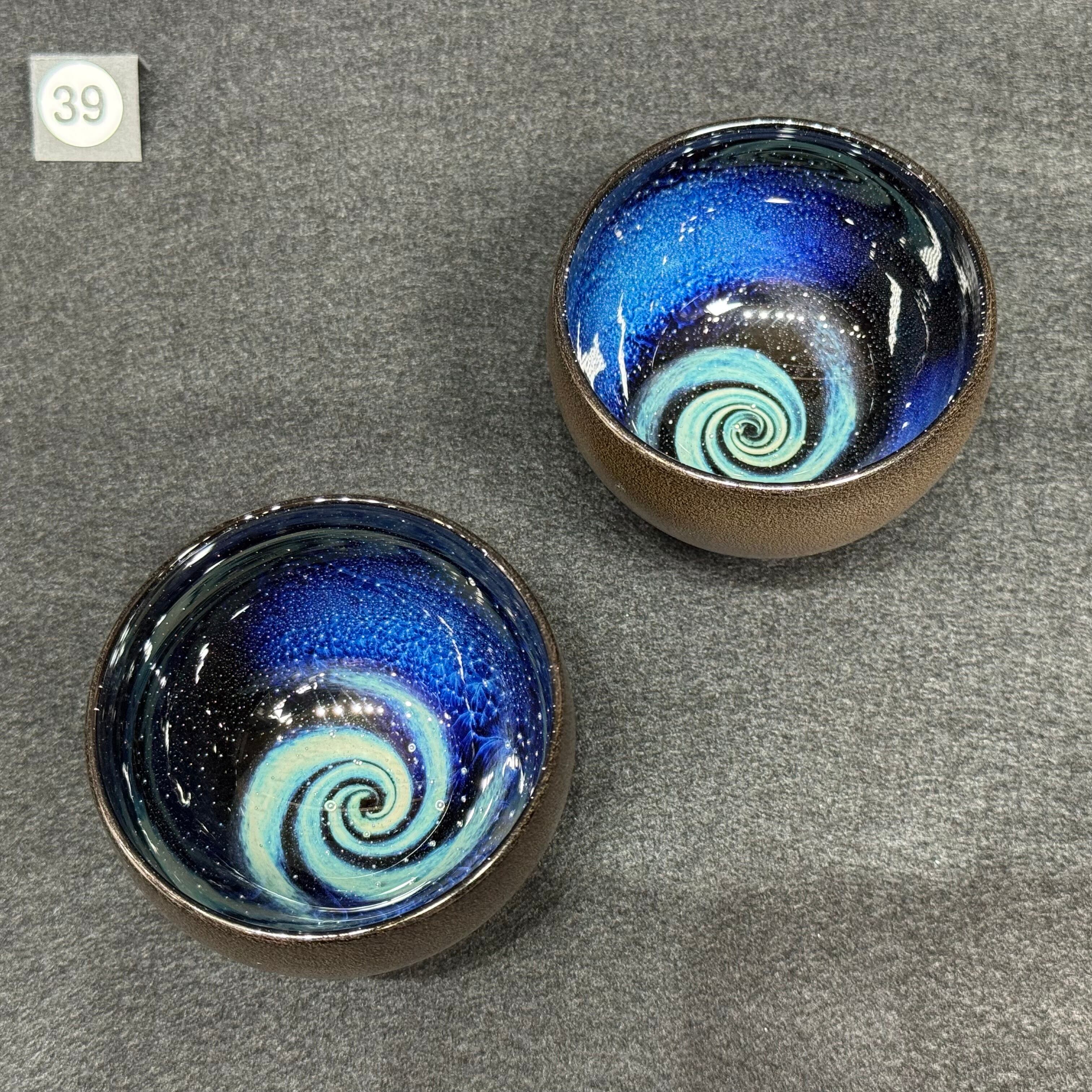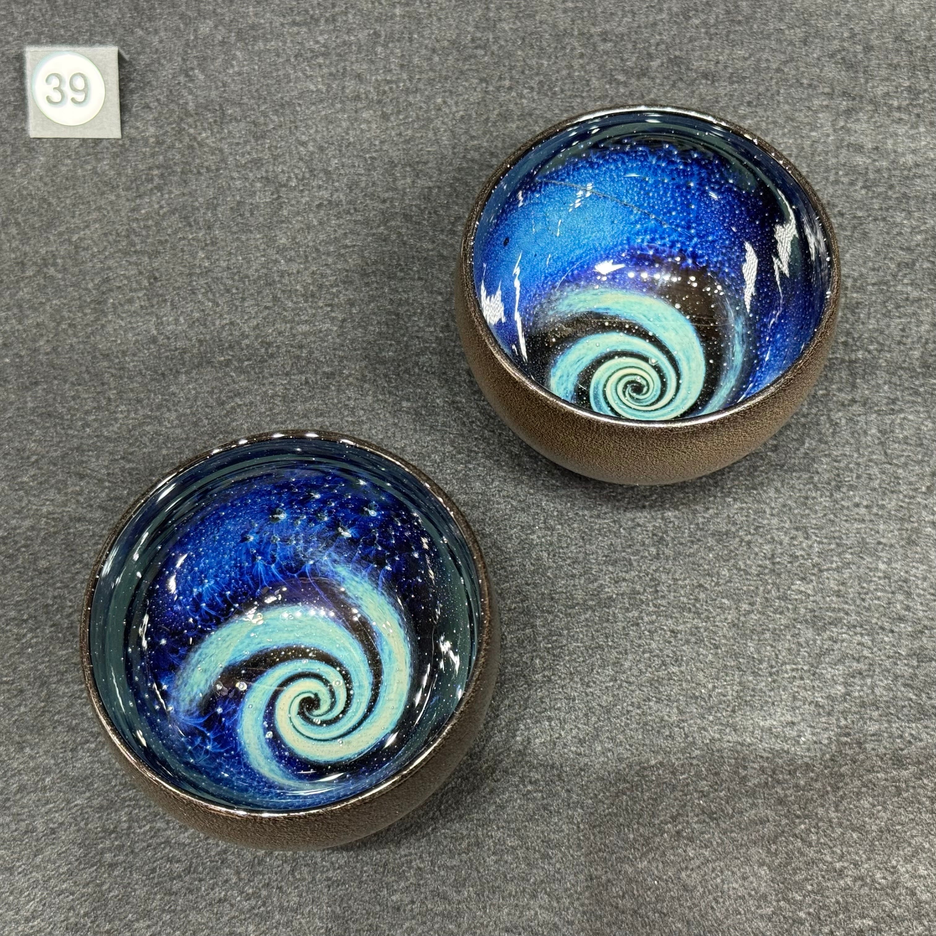 宇宙に渦巻く銀河をイメージして吹きガラスで制作しています。