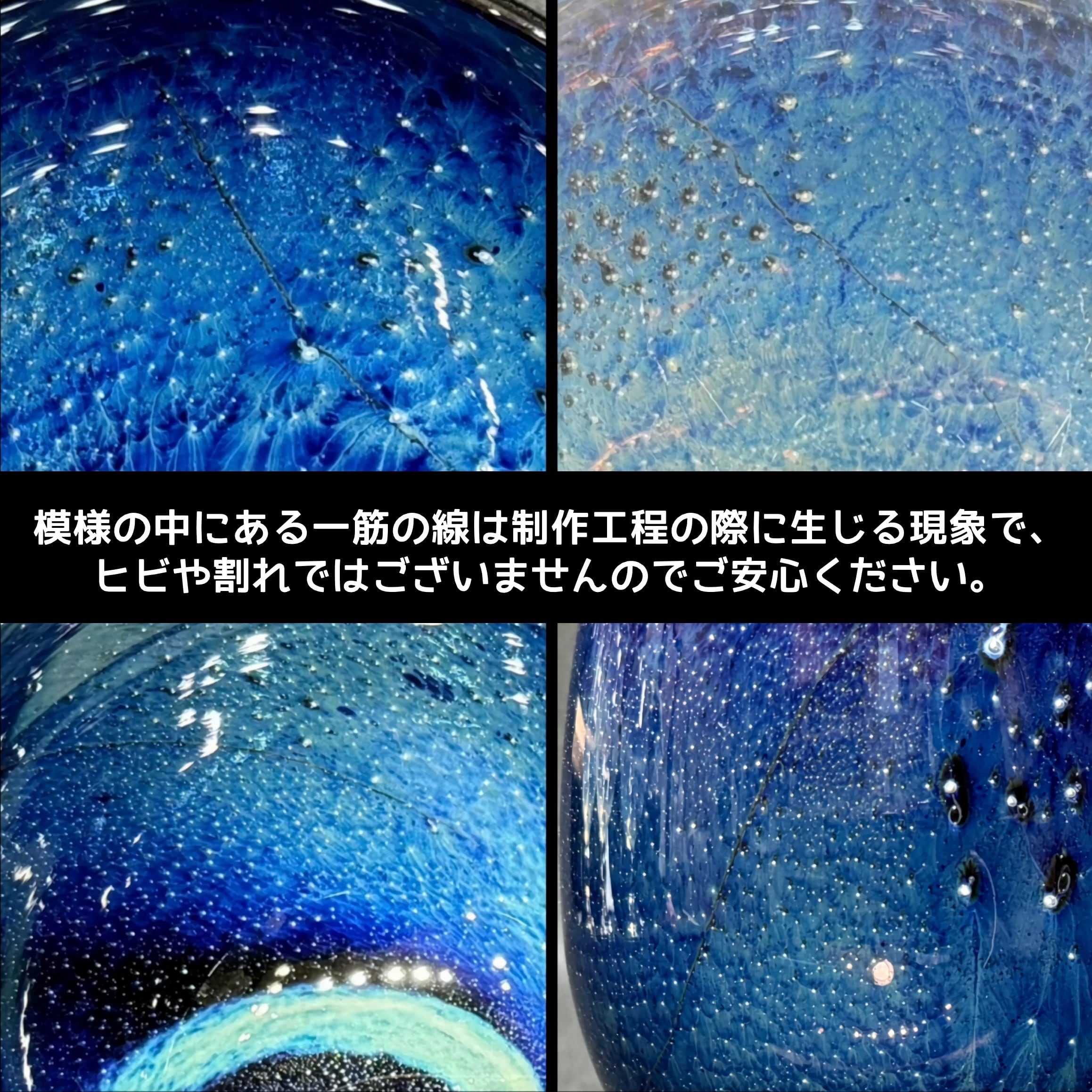 模様の中にある一筋の線は制作工程で生じる現象で、割れやヒビではございませんのでご安心ください。