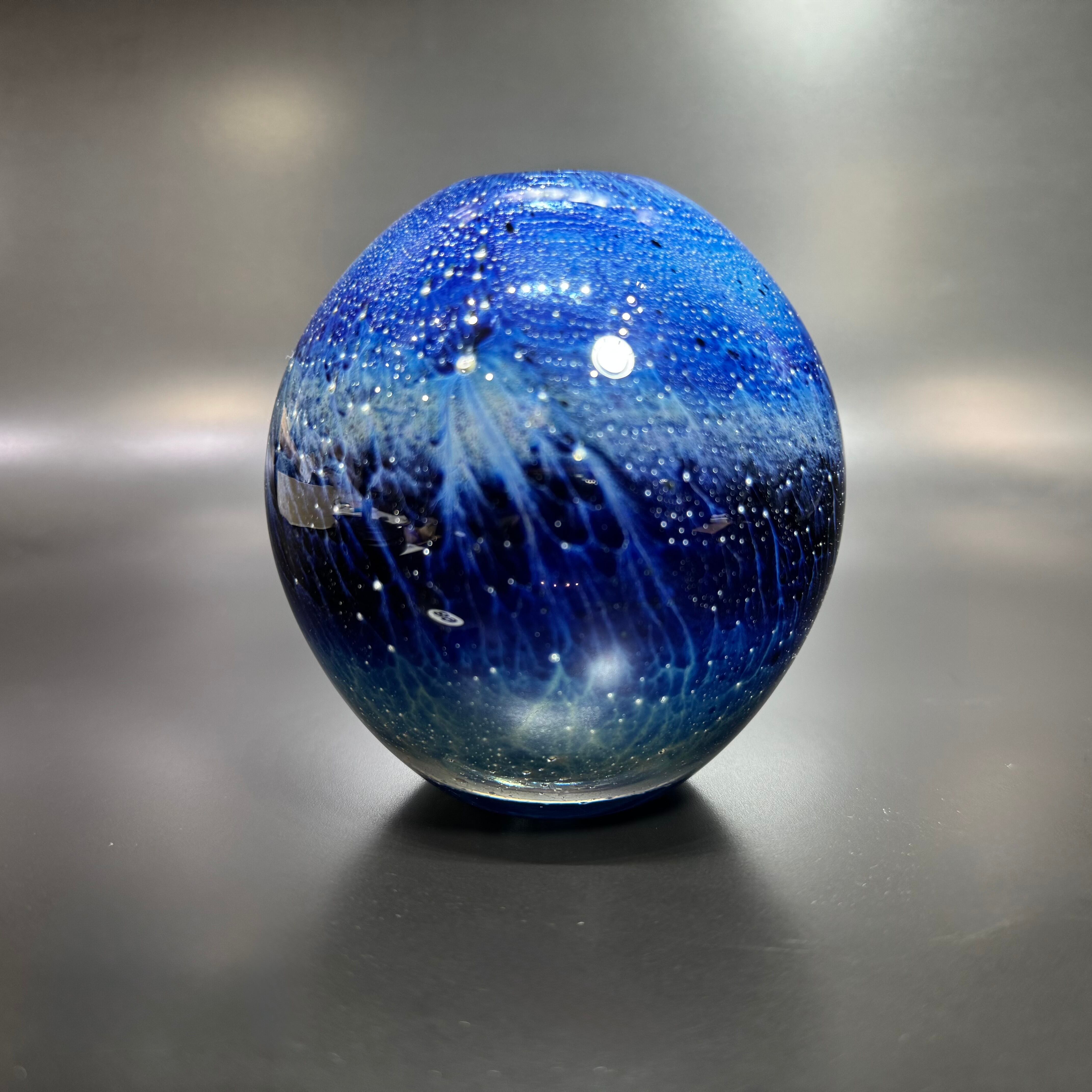 ずっしりと重量感があり、360度青く輝く宇宙の一輪挿しです。